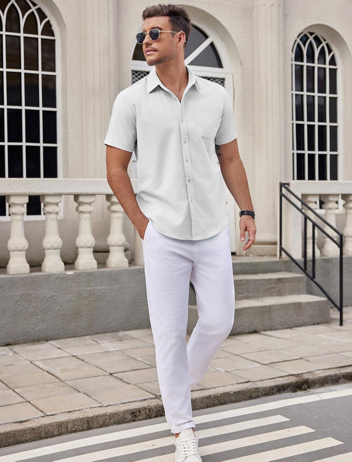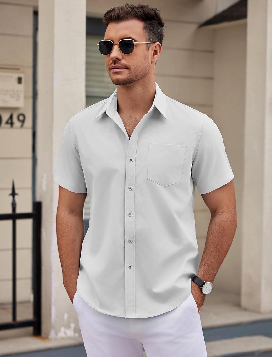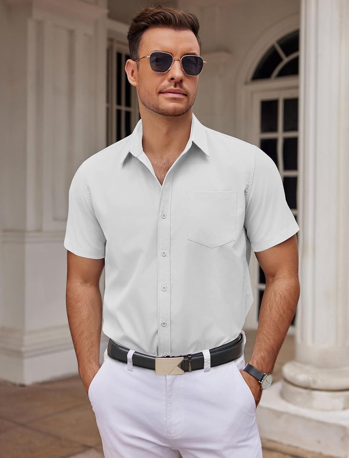 COOFANDY Mens Dress Shirts Short Sleeve Business Casual Shirts Regular Fit Casual Button Down Untucked Shirts(A-white)