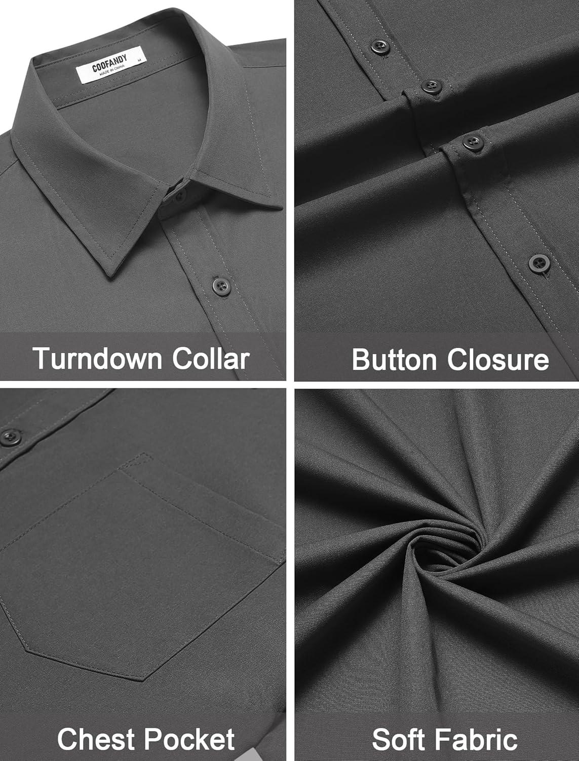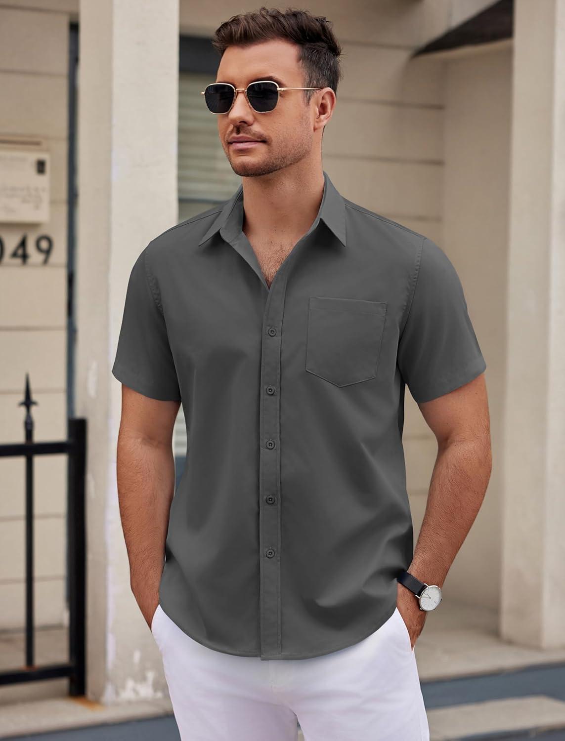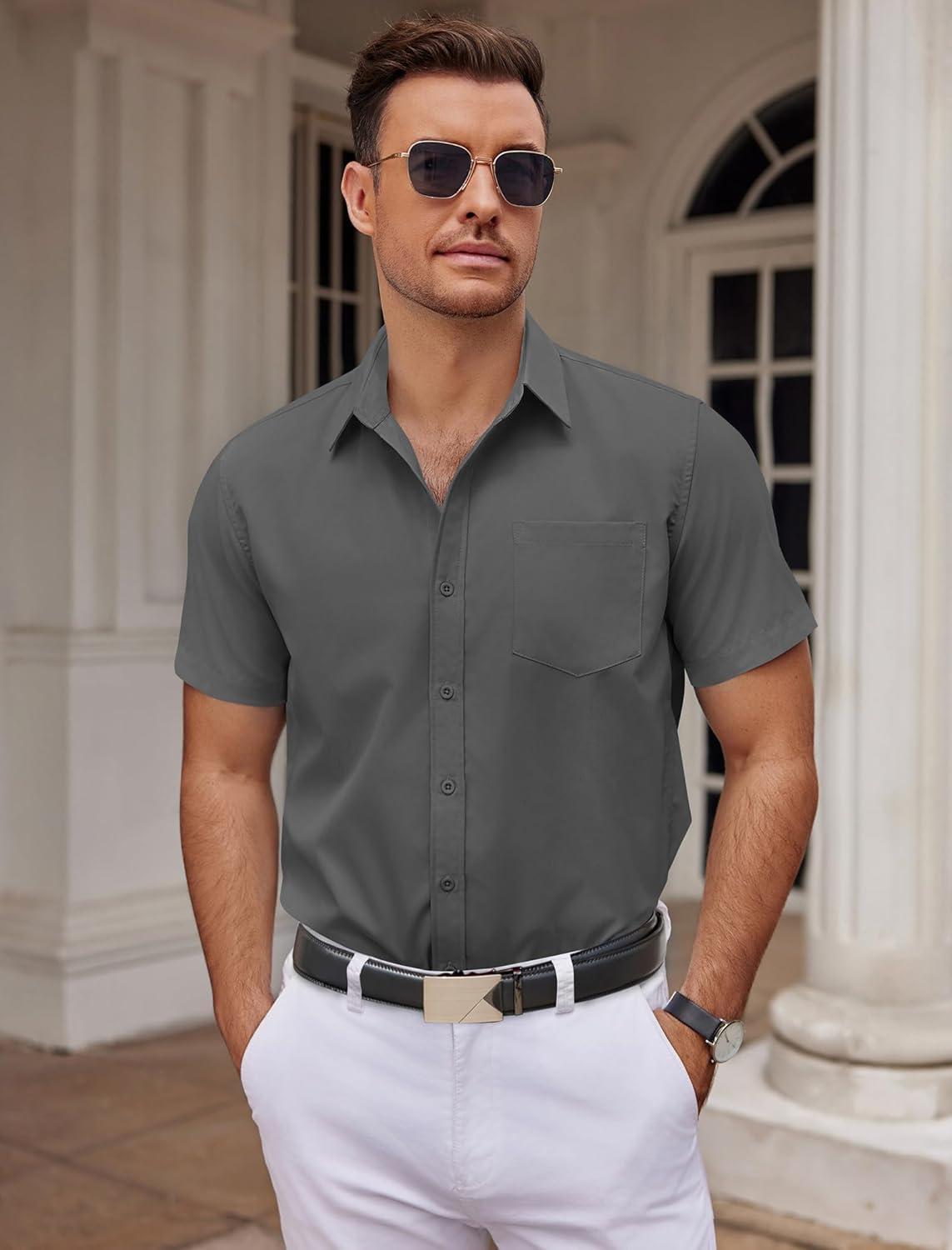COOFANDY Mens Dress Shirts Short Sleeve Business Casual Shirts Regular Fit Casual Button Down Untucked Shirts(Dark Gray)