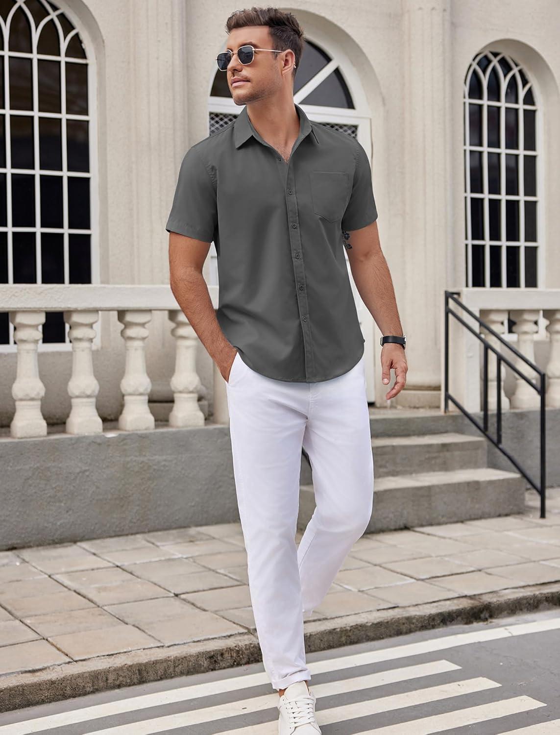 COOFANDY Mens Dress Shirts Short Sleeve Business Casual Shirts Regular Fit Casual Button Down Untucked Shirts(Light Gray)