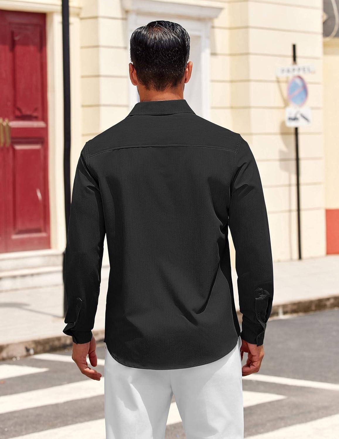 COOFANDY Mens Dress Shirts Untucked Long Sleeve Button Down Denim Shirt Stretch Business Casual Shirts for Men(Black)