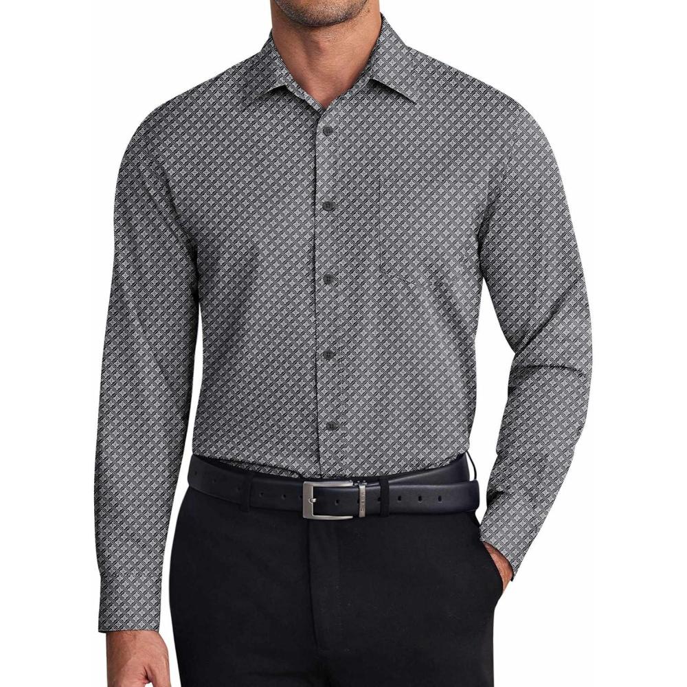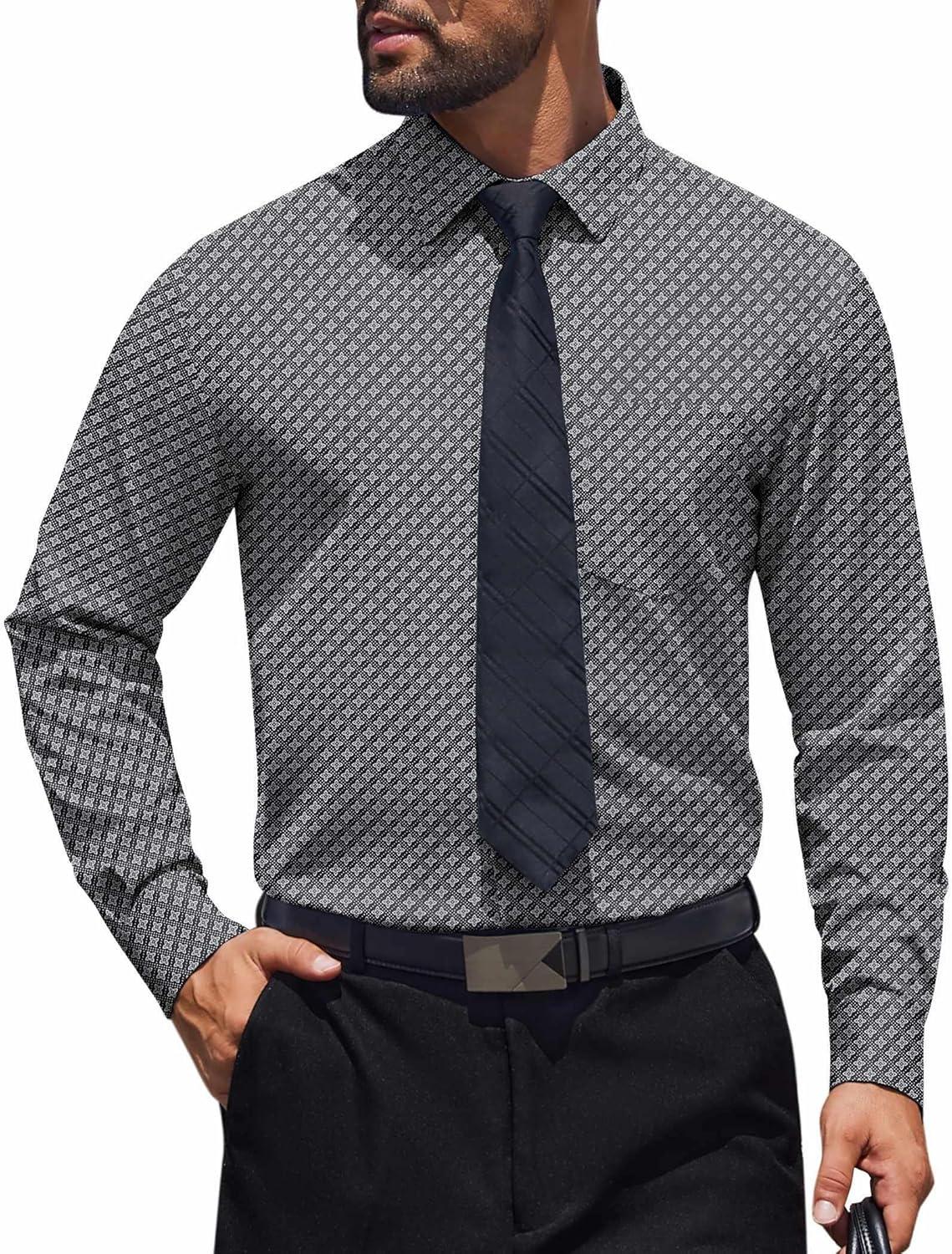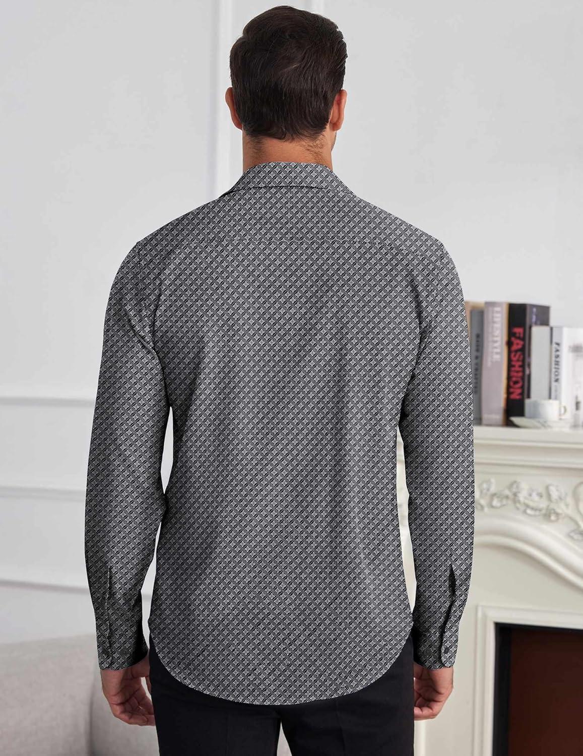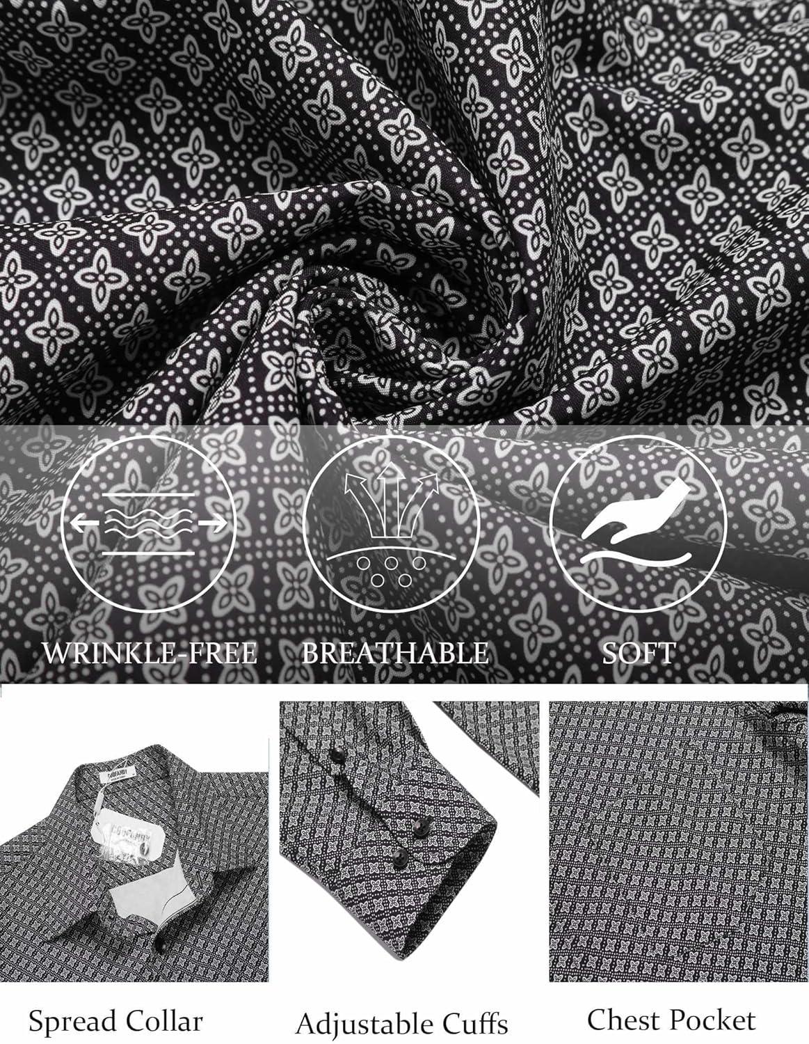 COOFANDY Mens Dress Shirts Wrinkle Free Long Sleeve Button Down Shirt Formal Business Shirts(Black(windmill))