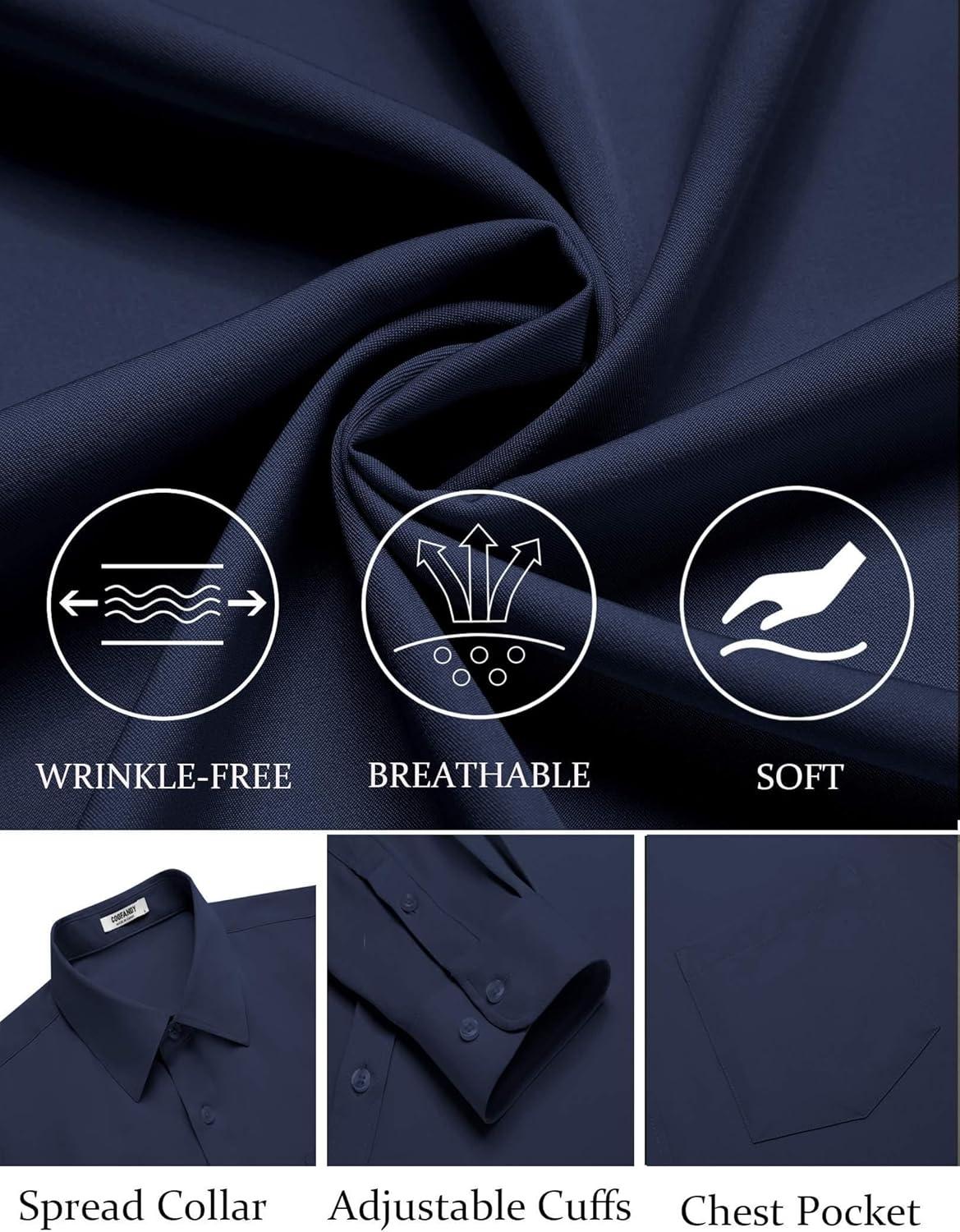 COOFANDY Mens Dress Shirts Wrinkle Free Long Sleeve Button Down Shirt Formal Business Shirts(Navy Blue)