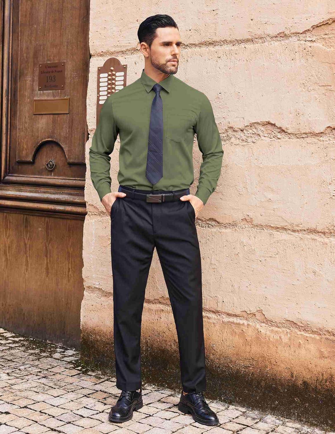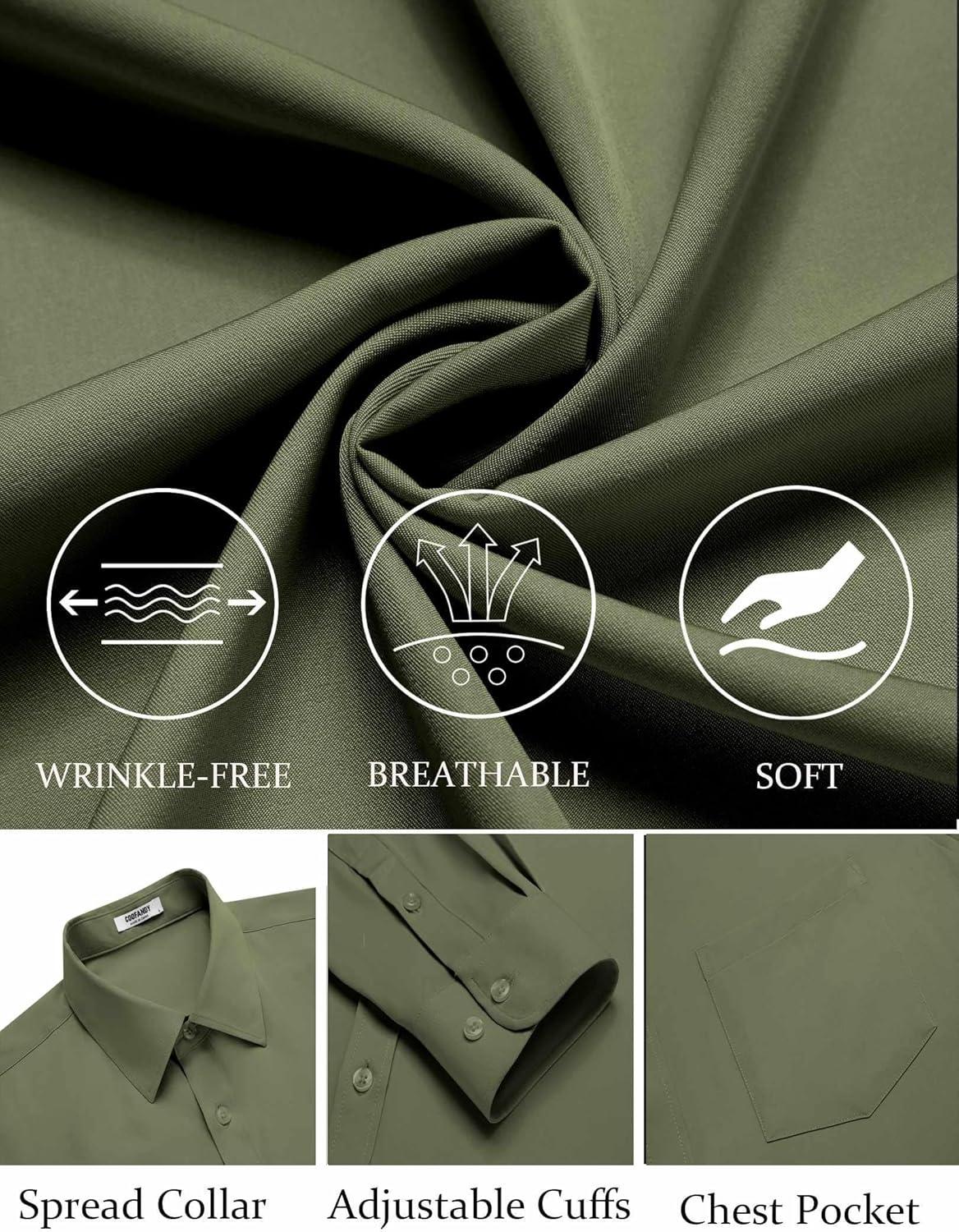 COOFANDY Mens Dress Shirts Wrinkle Free Long Sleeve Button Down Shirt Formal Business Shirts(Olive Green)