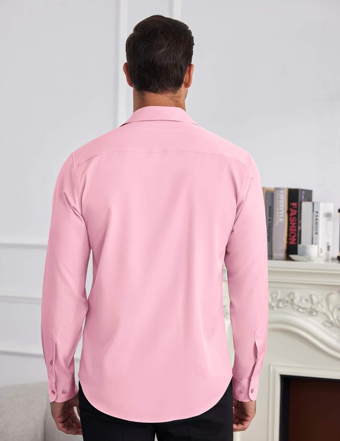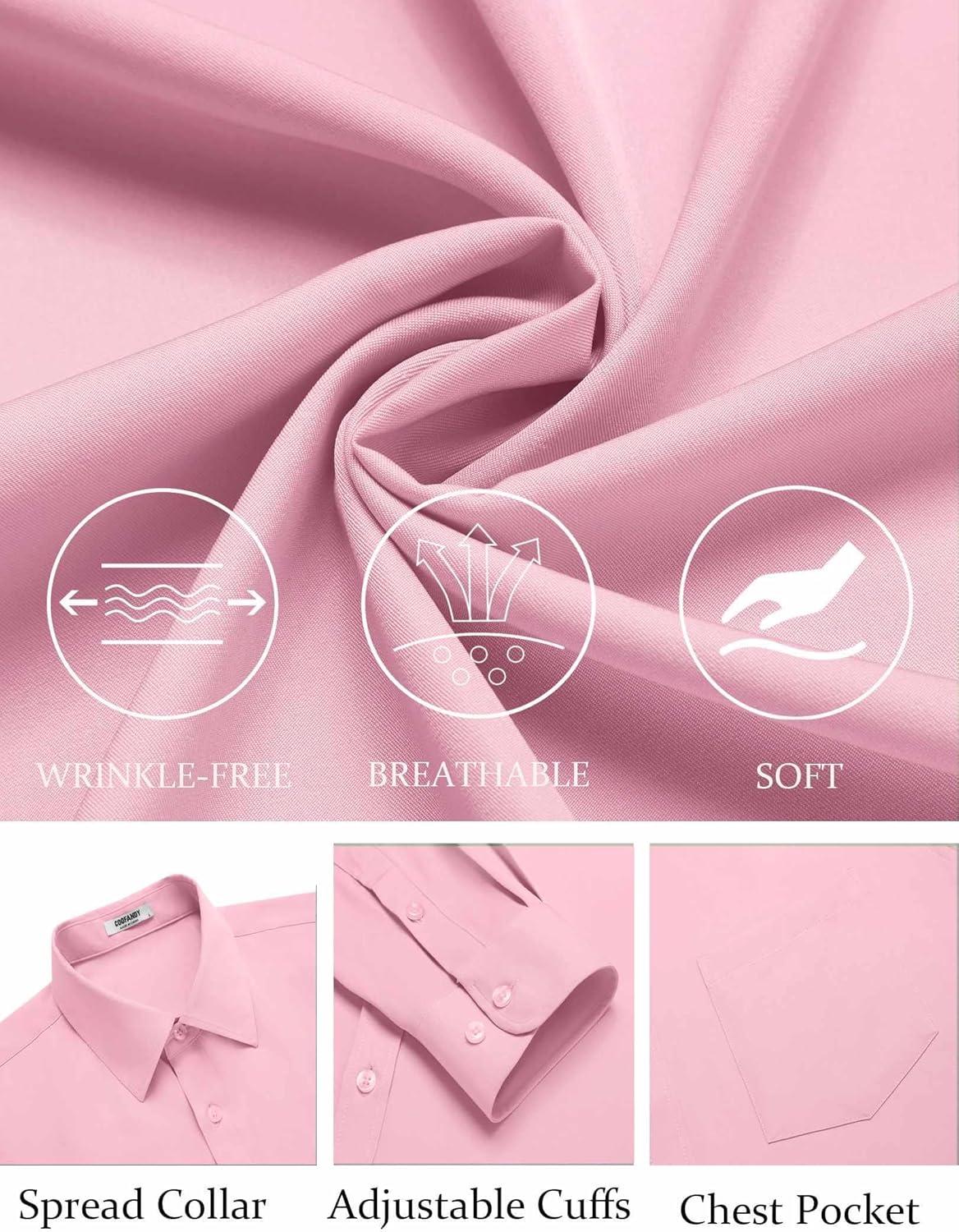 COOFANDY Mens Dress Shirts Wrinkle Free Long Sleeve Button Down Shirt Formal Business Shirts(Pink)