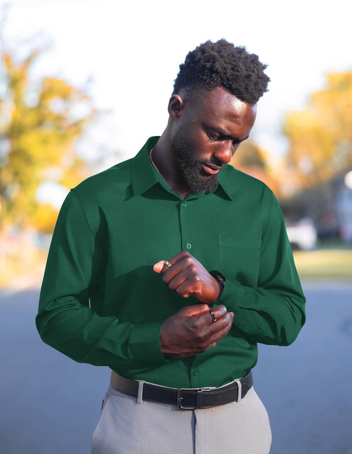 COOFANDY Mens Dress Shirts Wrinkle Free Long Sleeve Button Down Shirts Formal Business Shirt(Dark Green)