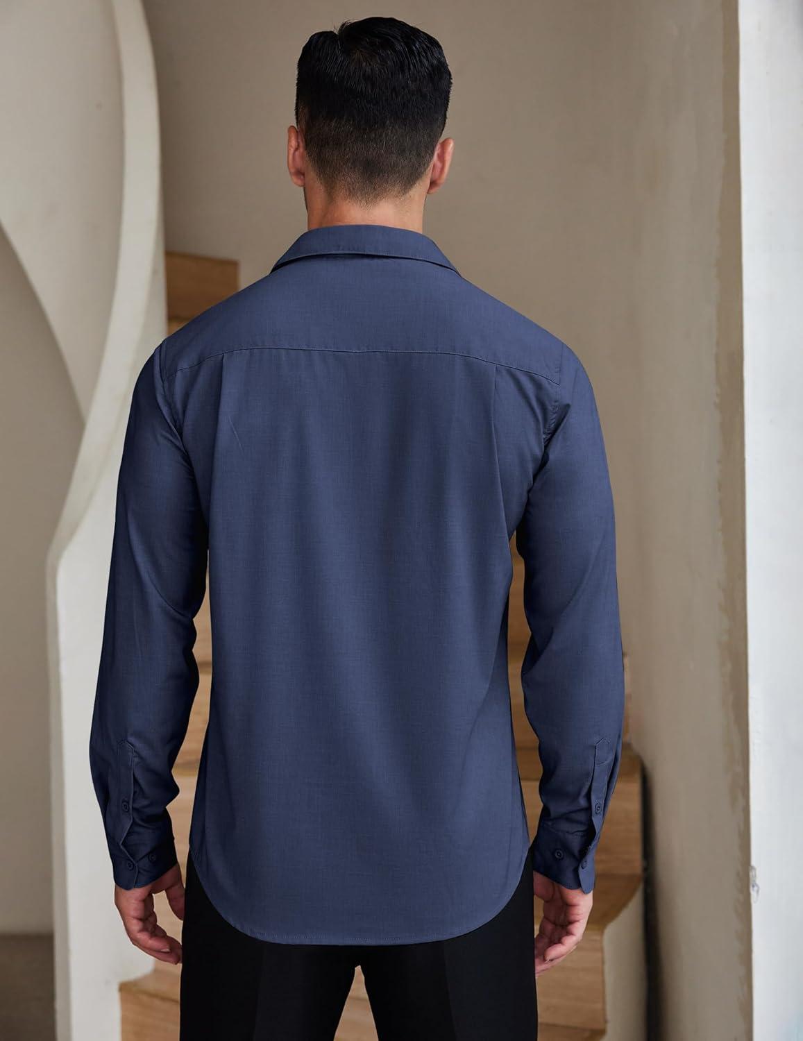 COOFANDY Mens Dress Shirts Wrinkle Free Long Sleeve Button Down Shirts Formal Business Shirt(Denim Blue)