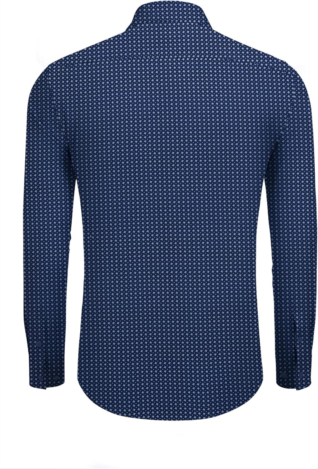 imageCOOFANDY Mens Dress Shirts Wrinkle Free Long Sleeve Button Down Shirts Formal Business ShirtWhite Patterned Blue
