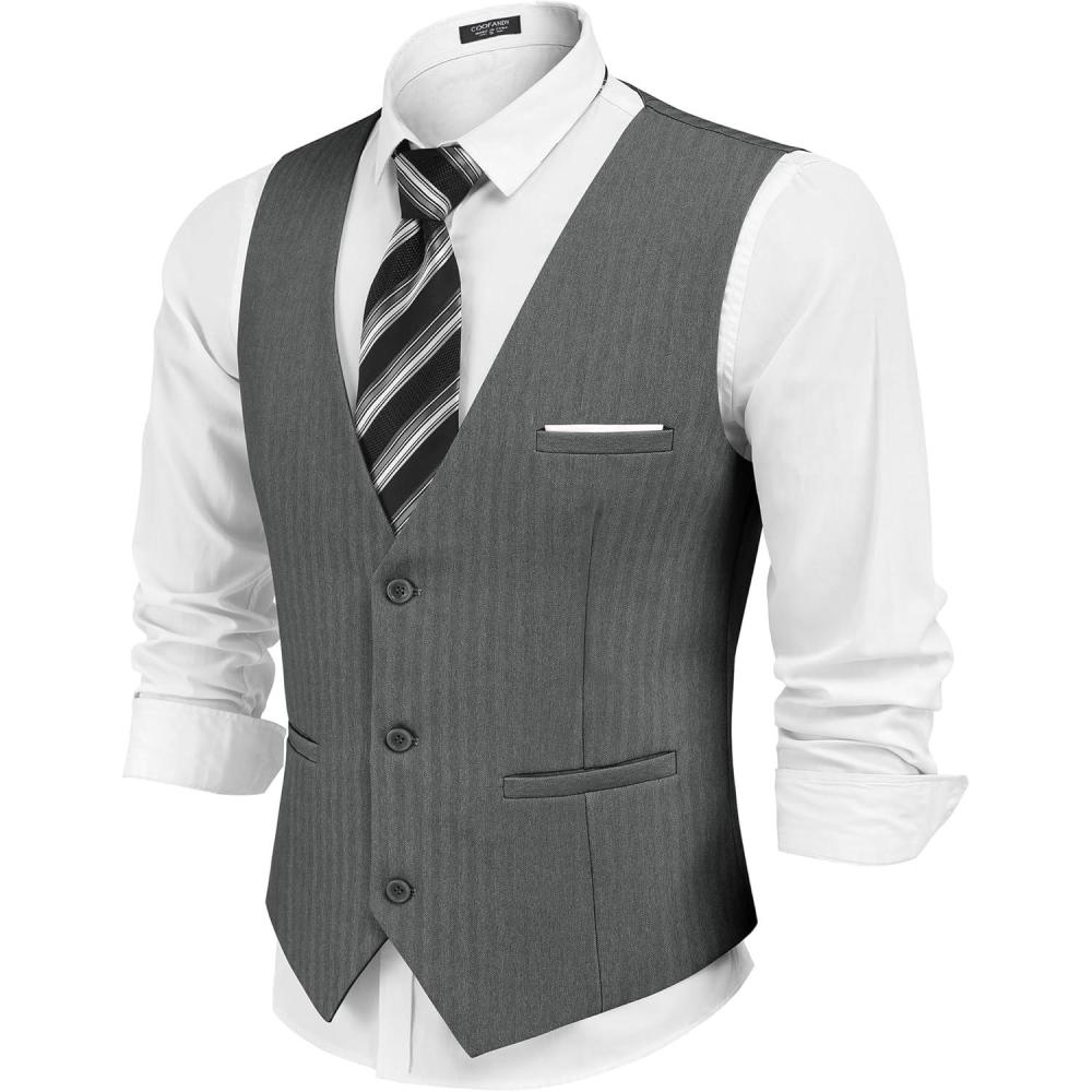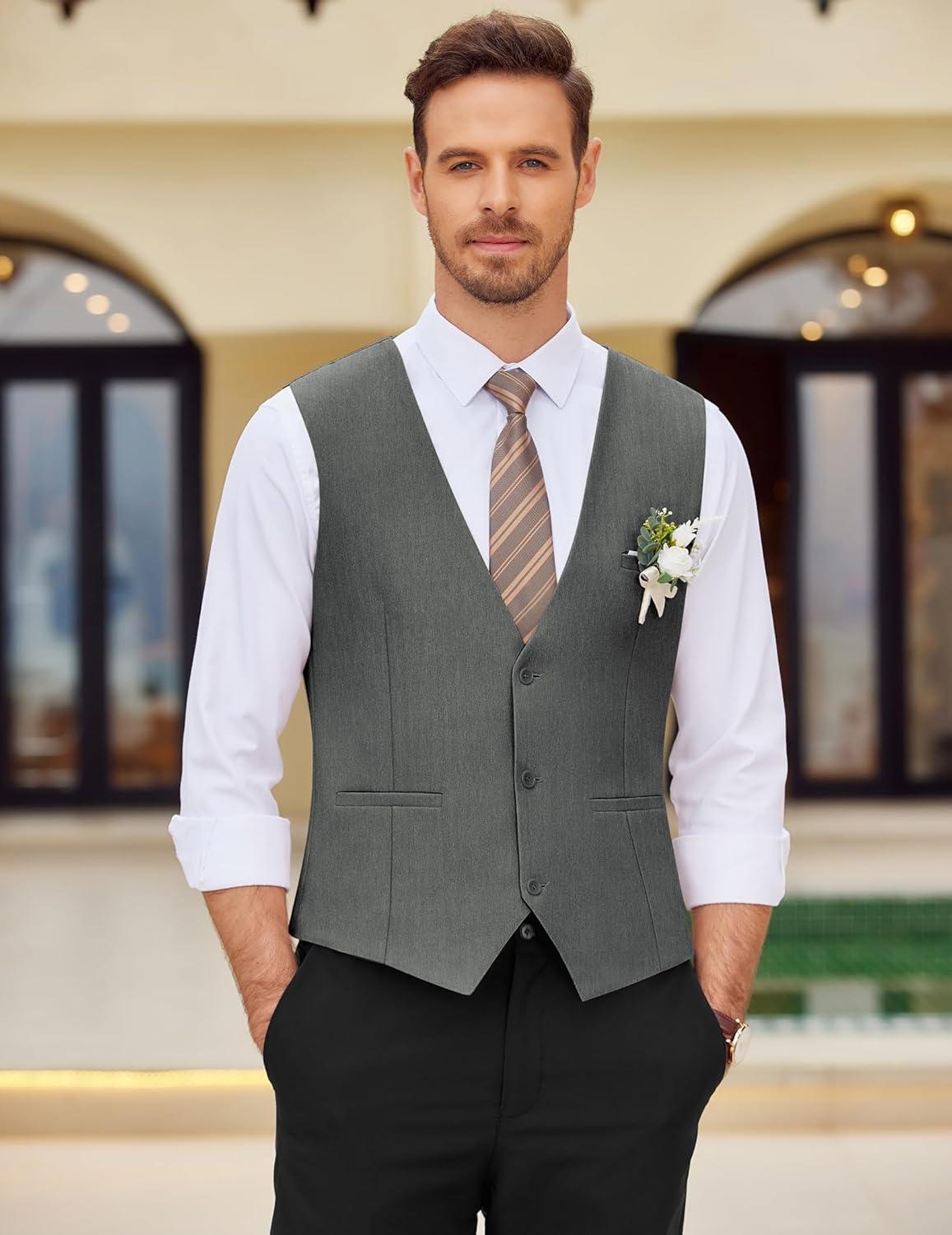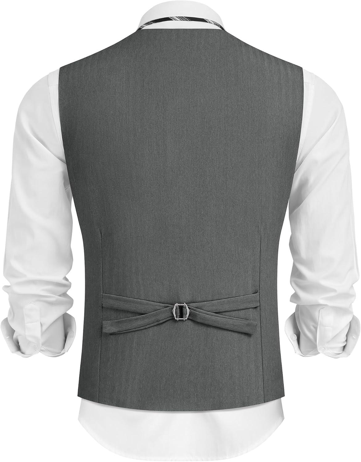 COOFANDY Men’s Suit Vests Slim Fit Waistcoat Notch Lapel Casual Formal Vest(Grey)