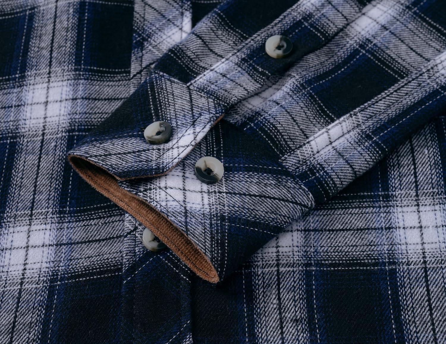 COOFANDY Men's Fall Plaid Button Down Shirt Long Sleeve Casual Cowboy Work Shirts Lightweight Flannel Shirts Two Pocket(Plaid-black & Navy)