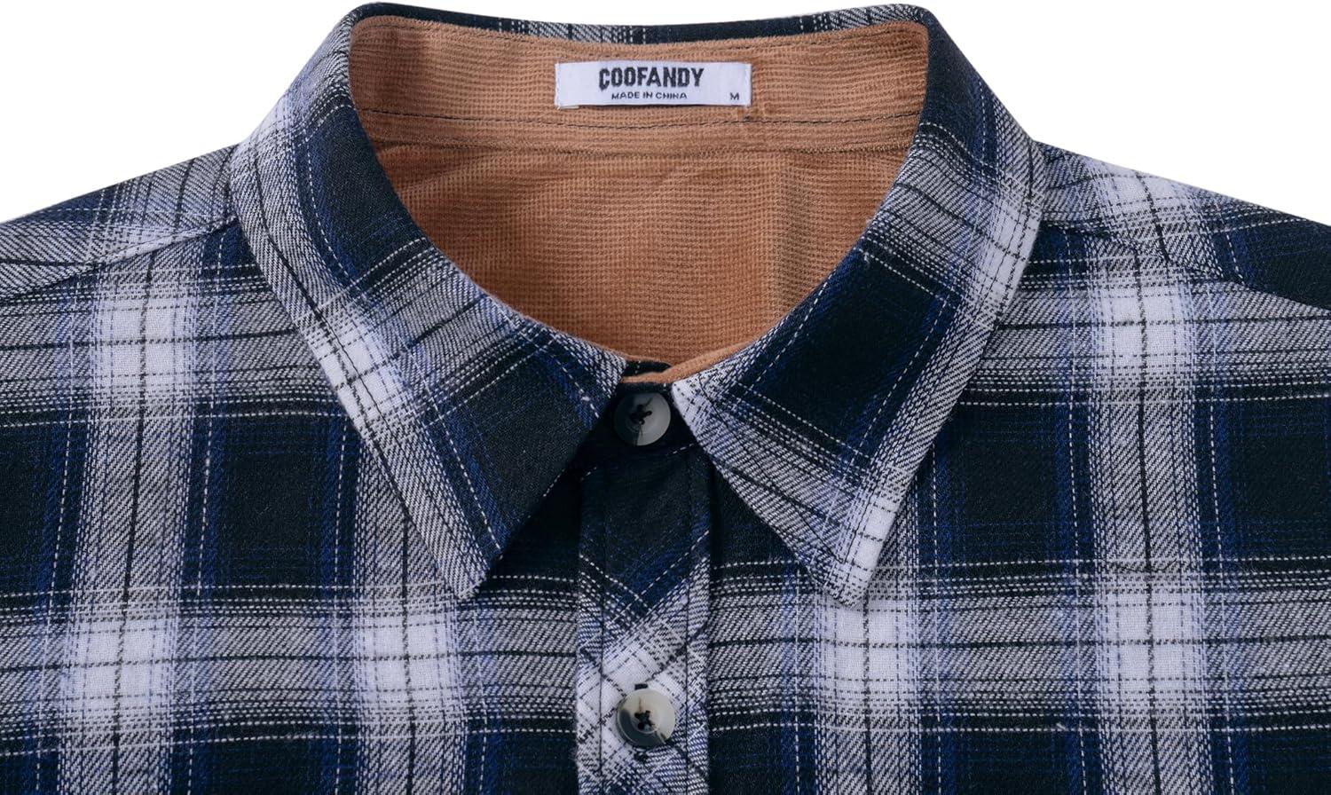 imageCOOFANDY Mens Fall Plaid Button Down Shirt Long Sleeve Casual Cowboy Work Shirts Lightweight Flannel Shirts Two PocketPlaidkhaki