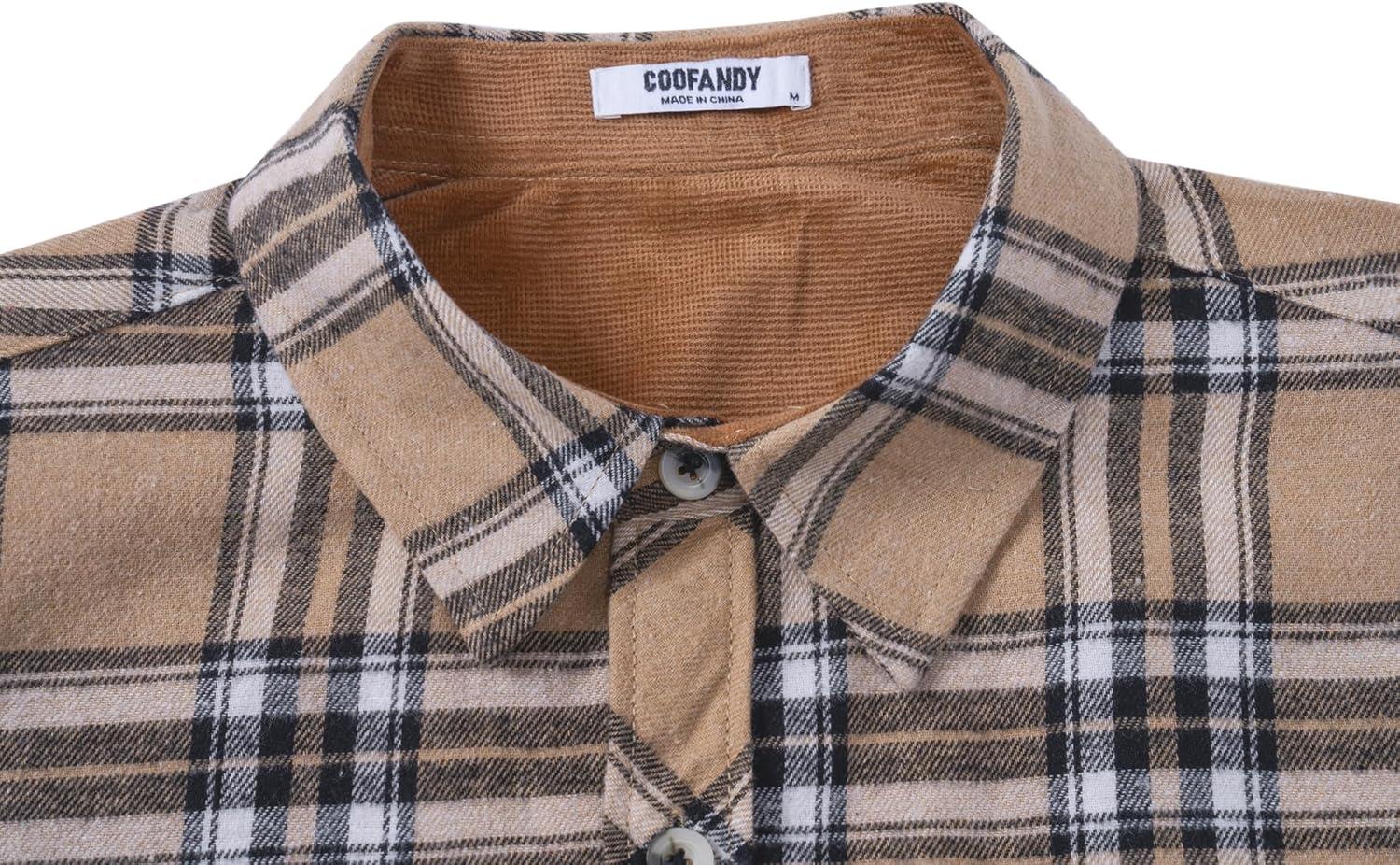 imageCOOFANDY Mens Fall Plaid Button Down Shirt Long Sleeve Casual Cowboy Work Shirts Lightweight Flannel Shirts Two PocketPlaidkhaki
