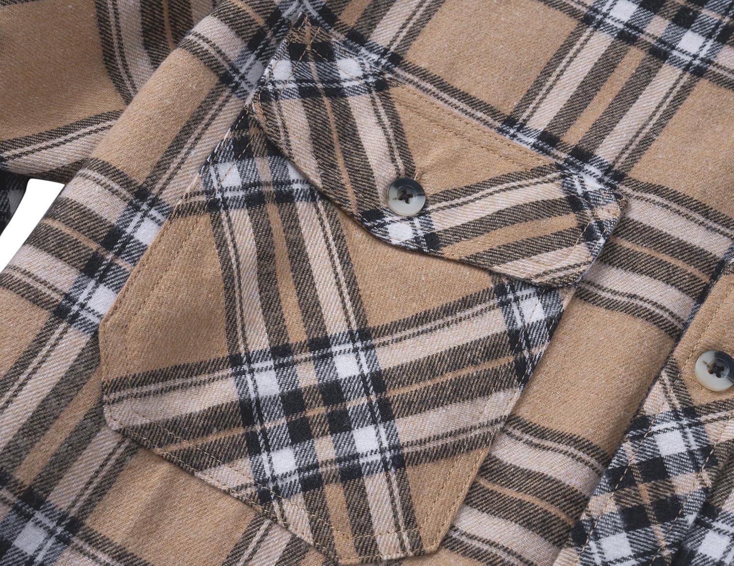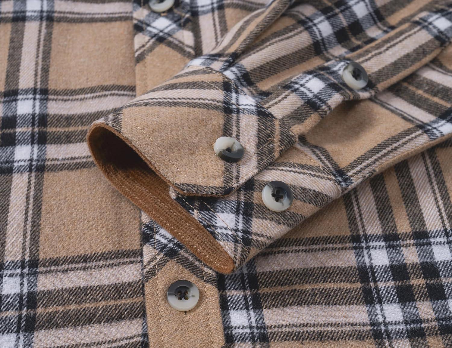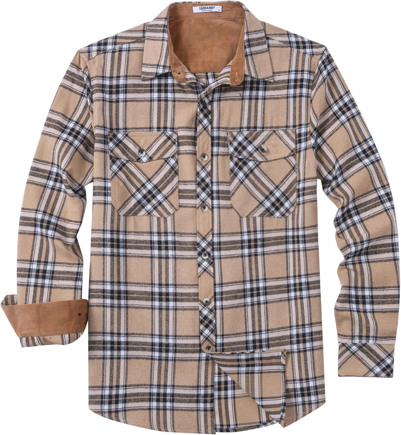 COOFANDY Men's Fall Plaid Button Down Shirt Long Sleeve Casual Cowboy Work Shirts Lightweight Flannel Shirts Two Pocket(Plaid-khaki)