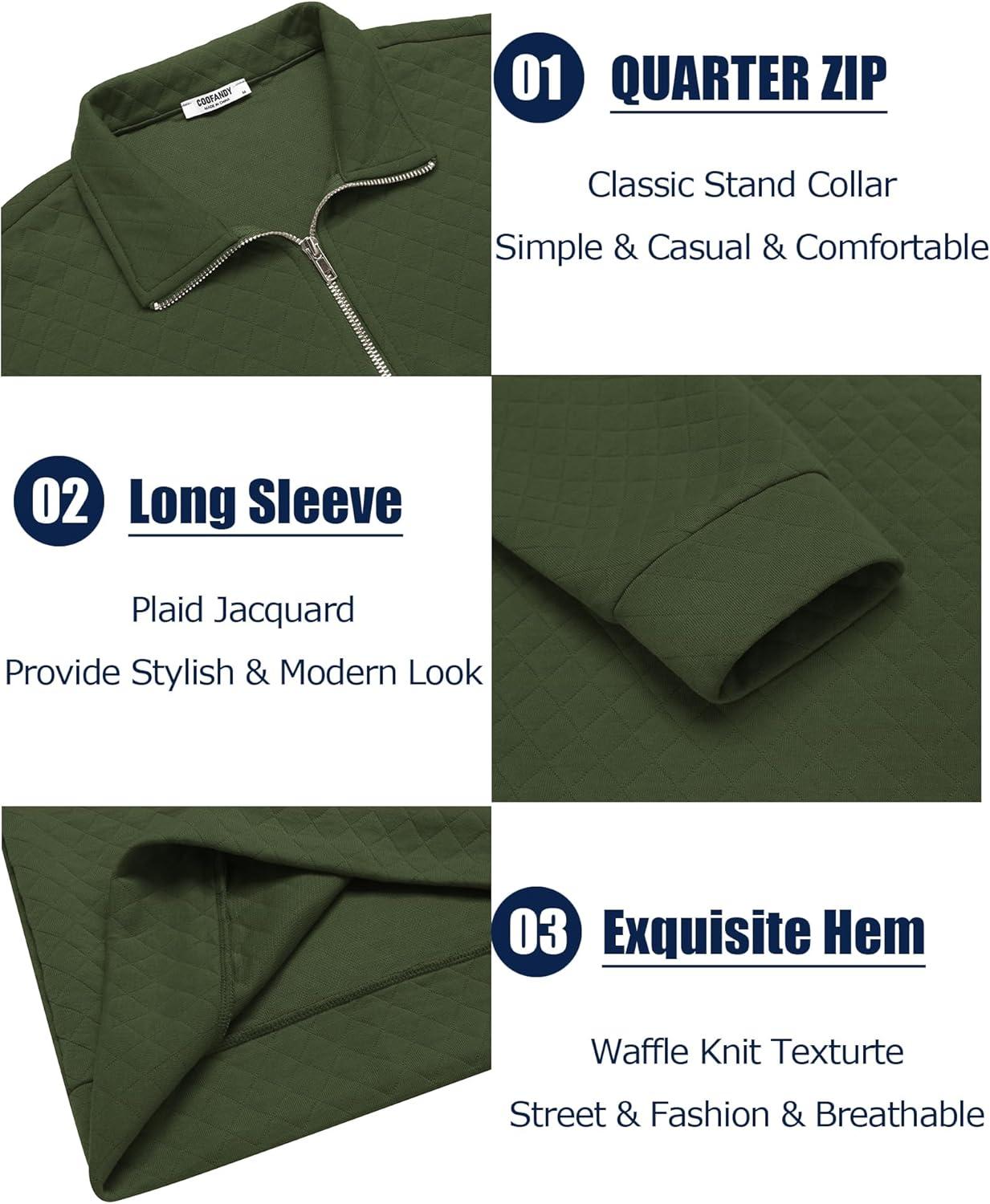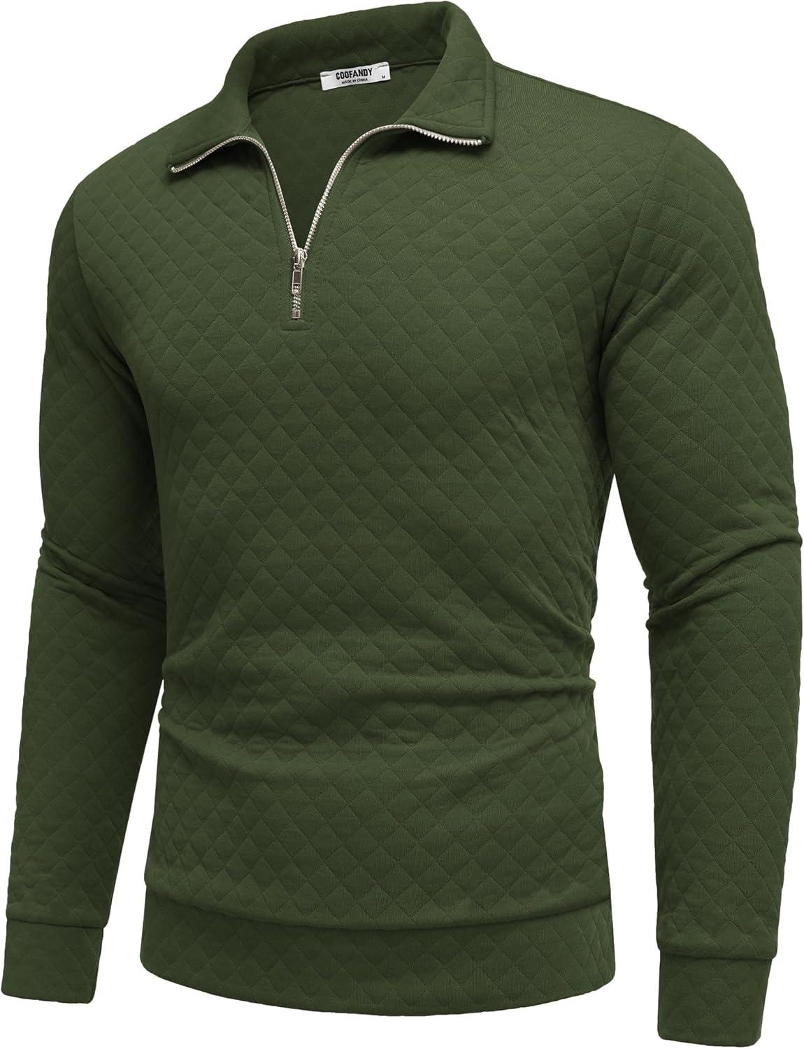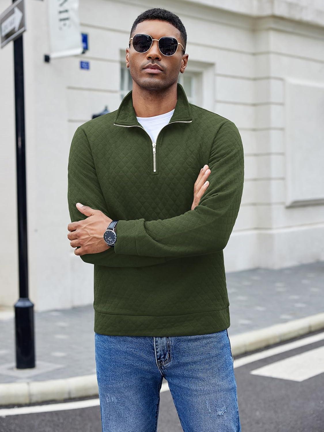 Save big on COOFANDY Men’s Fashion Quarter Zip Pullover Long Sleeve Quilted Sweatshirt Plaid Jacquard Polo Mock Neck Sweaters(Army Green) and accessories during our BOGO sale. Buy one, get one 50% off!