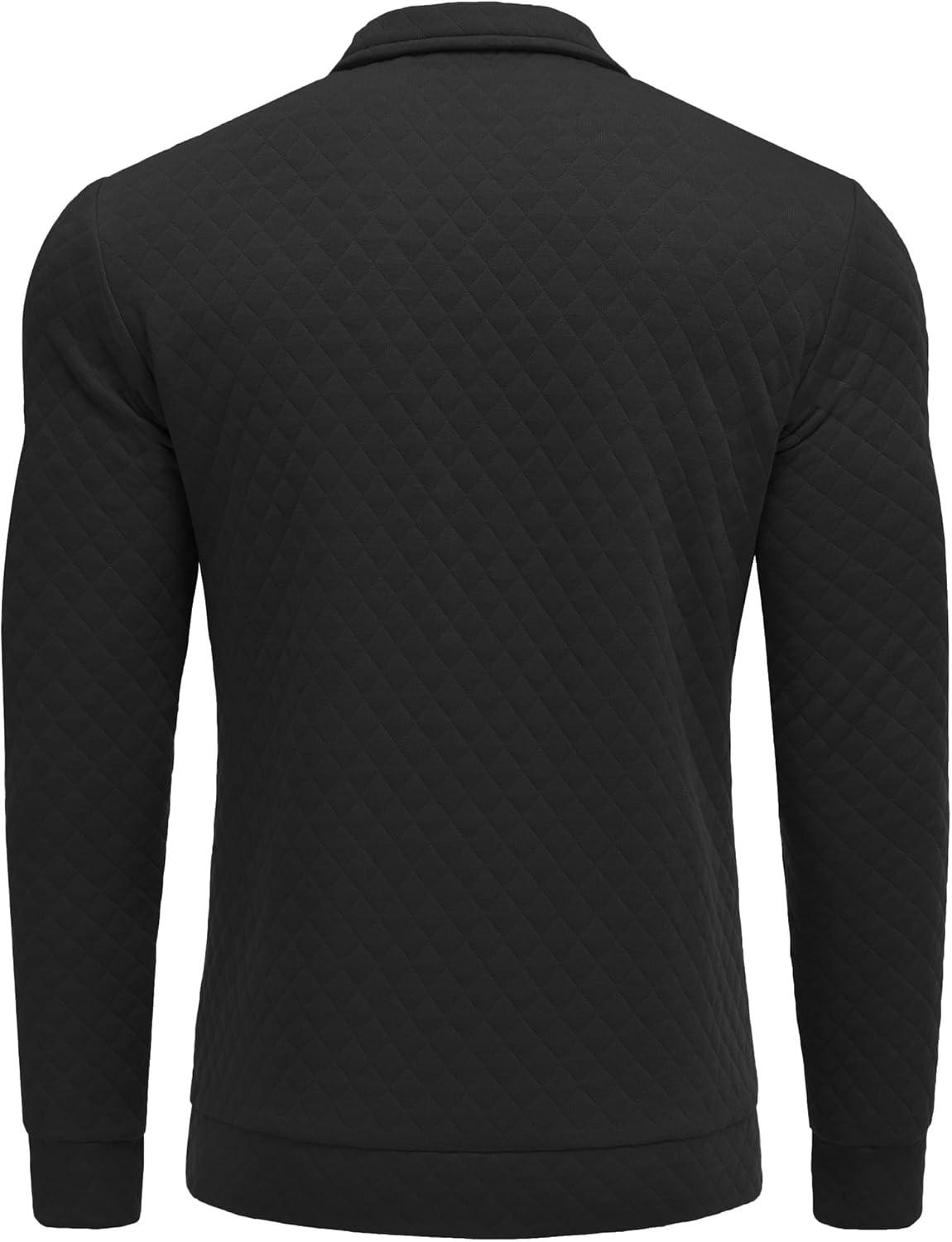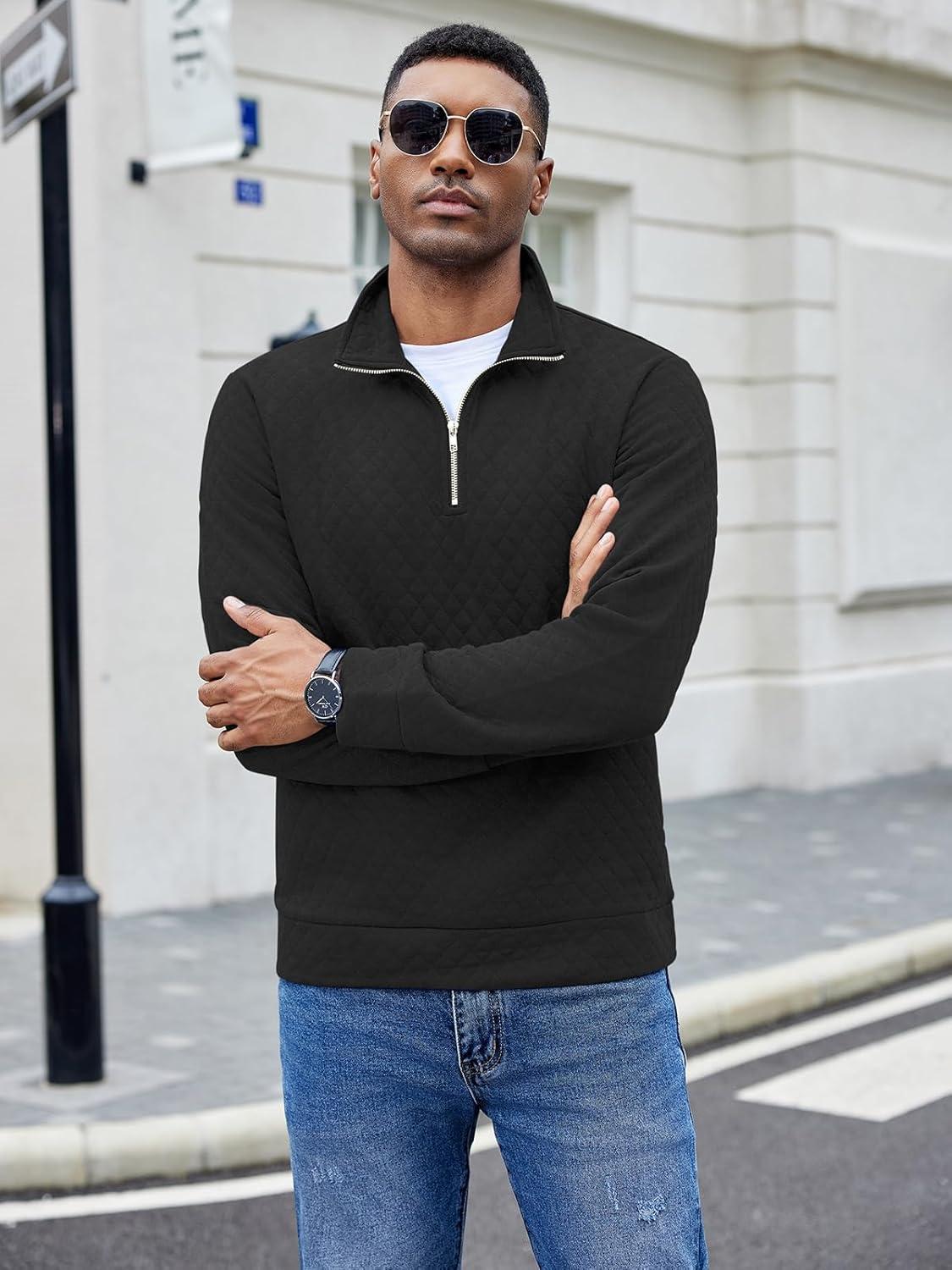 COOFANDY Men’s Fashion Quarter Zip Pullover Long Sleeve Quilted Sweatshirt Plaid Jacquard Polo Mock Neck Sweaters(Black)