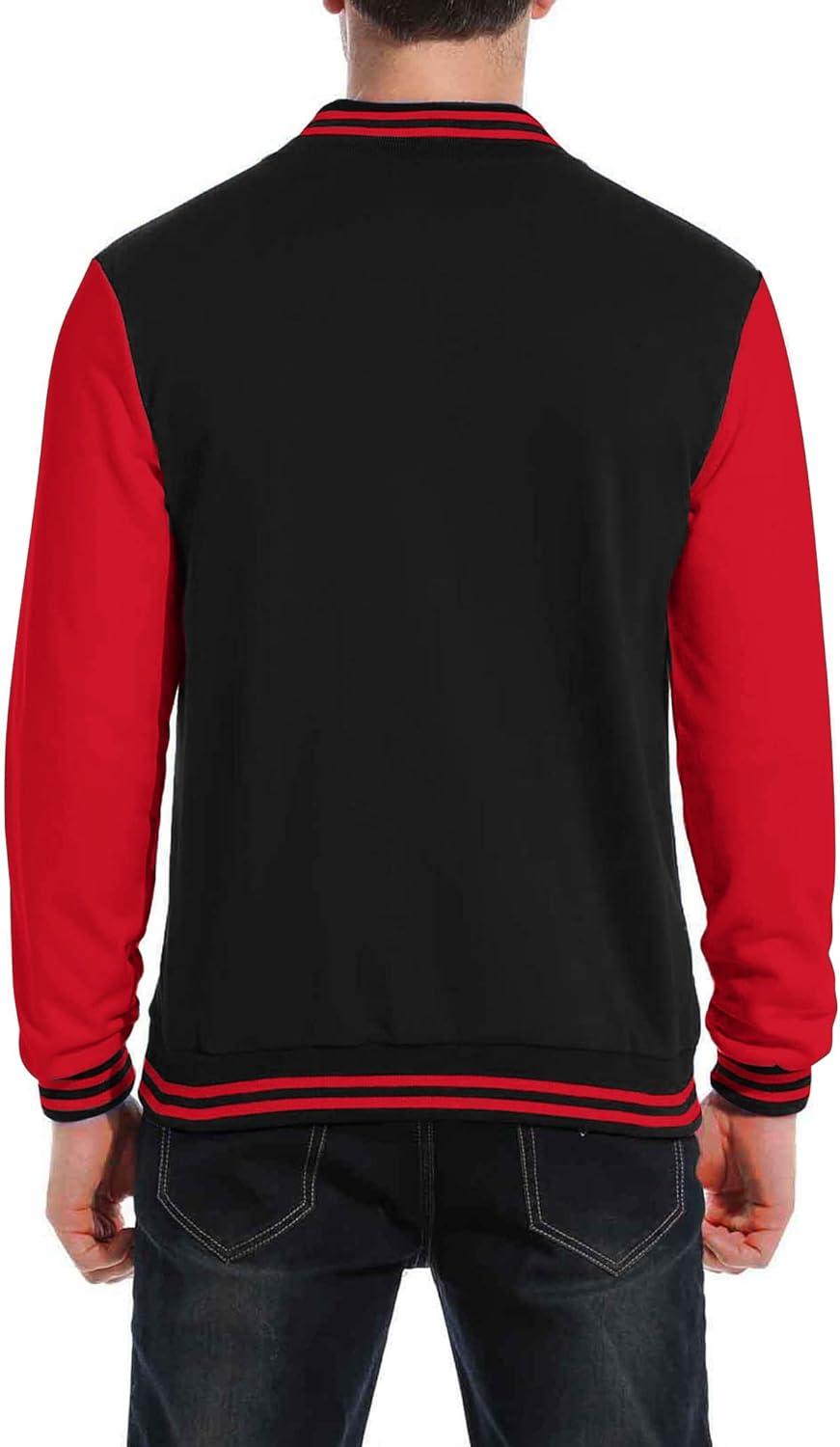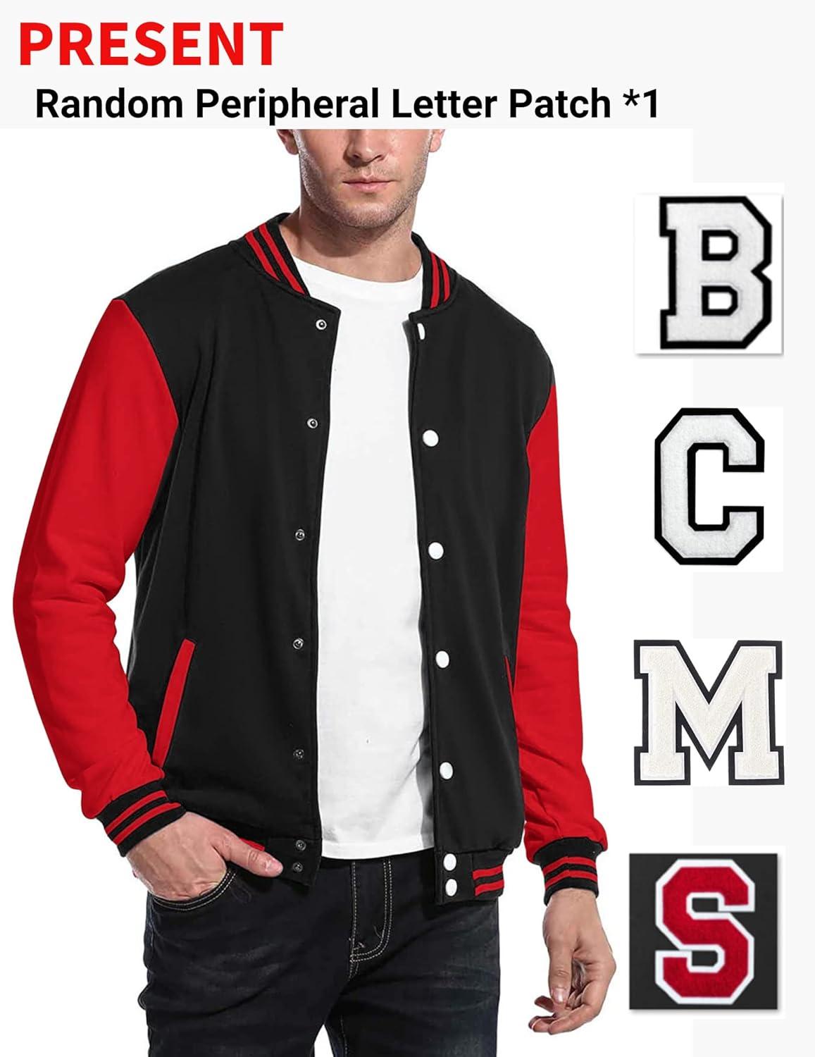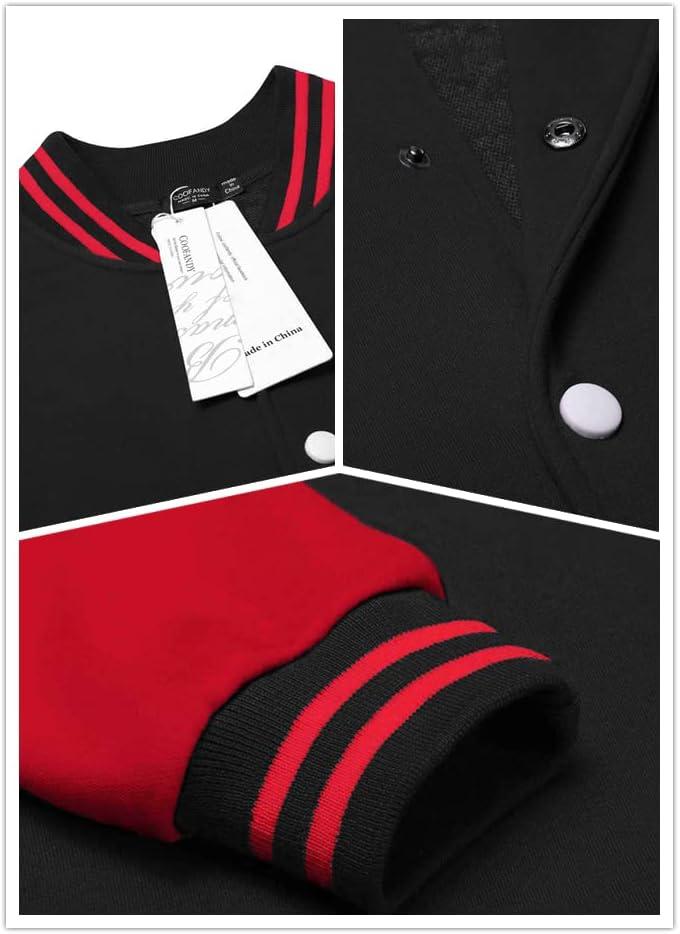 COOFANDY Men's Fashion Varsity Jacket Causal Slim Fit Cotton Letterman Baseball Bomber Jackets(Black/Red)