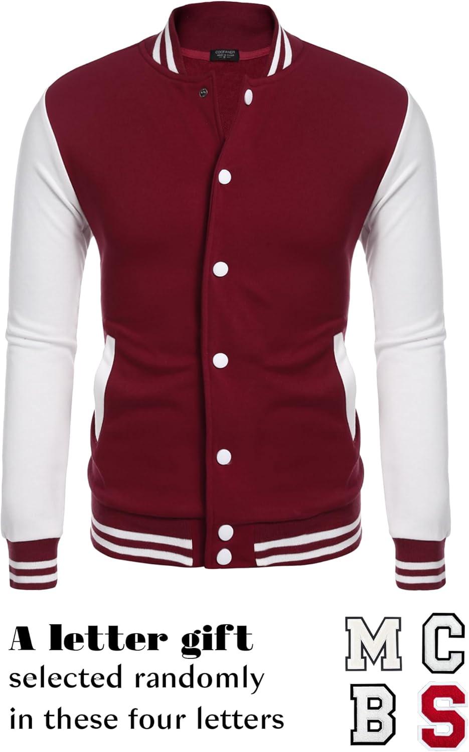 COOFANDY Men's Fashion Varsity Jacket Causal Slim Fit Cotton Letterman Baseball Bomber Jackets(Burgundy)