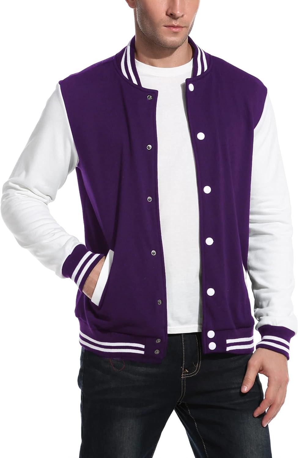 COOFANDY Men's Fashion Varsity Jacket Causal Slim Fit Cotton Letterman Baseball Bomber Jackets(Purple)