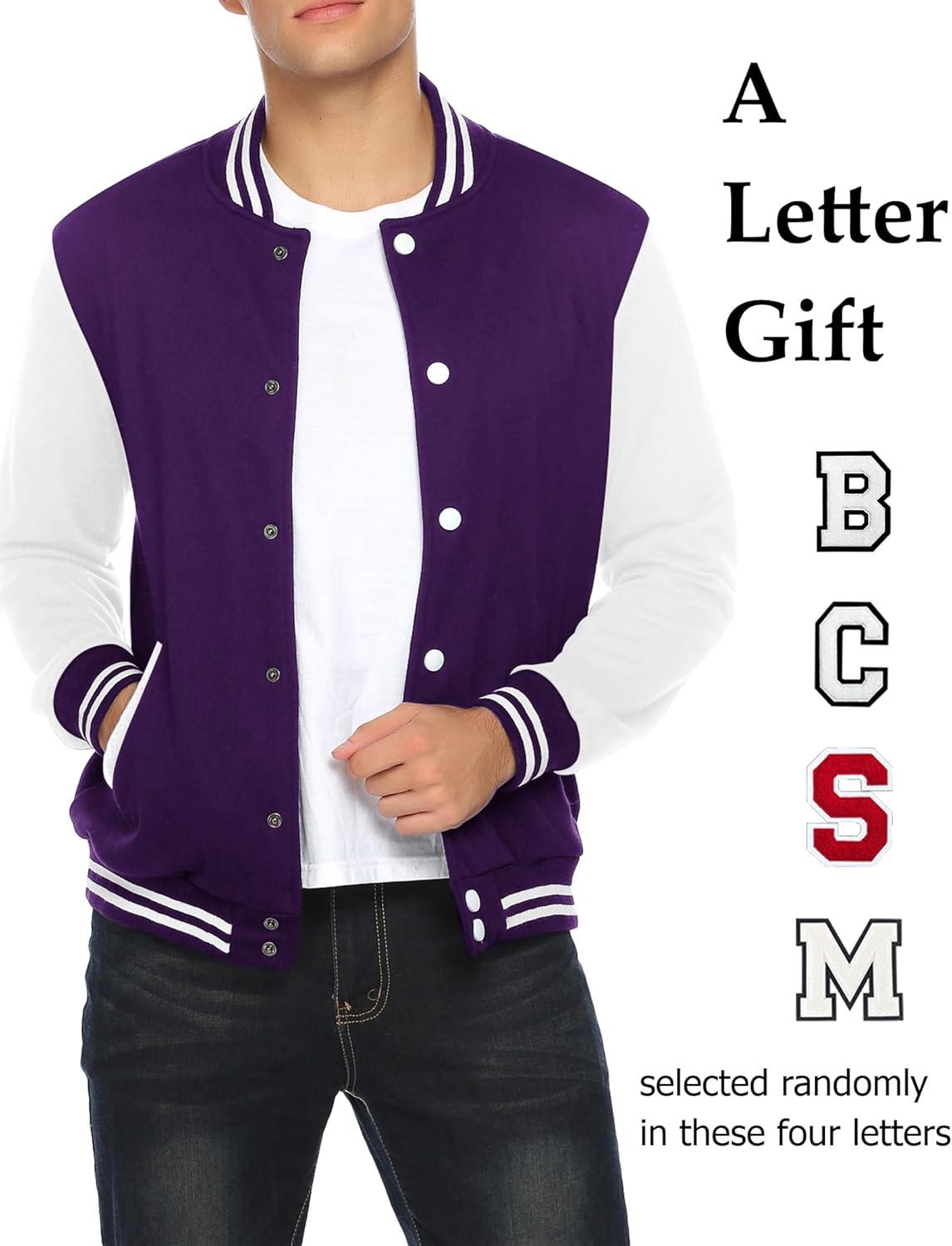 Don’t miss out on our limited-time offer: buy COOFANDY Men’s Fashion Varsity Jacket Causal Slim Fit Cotton Letterman Baseball Bomber Jackets(Purple), get a free {accessory}!