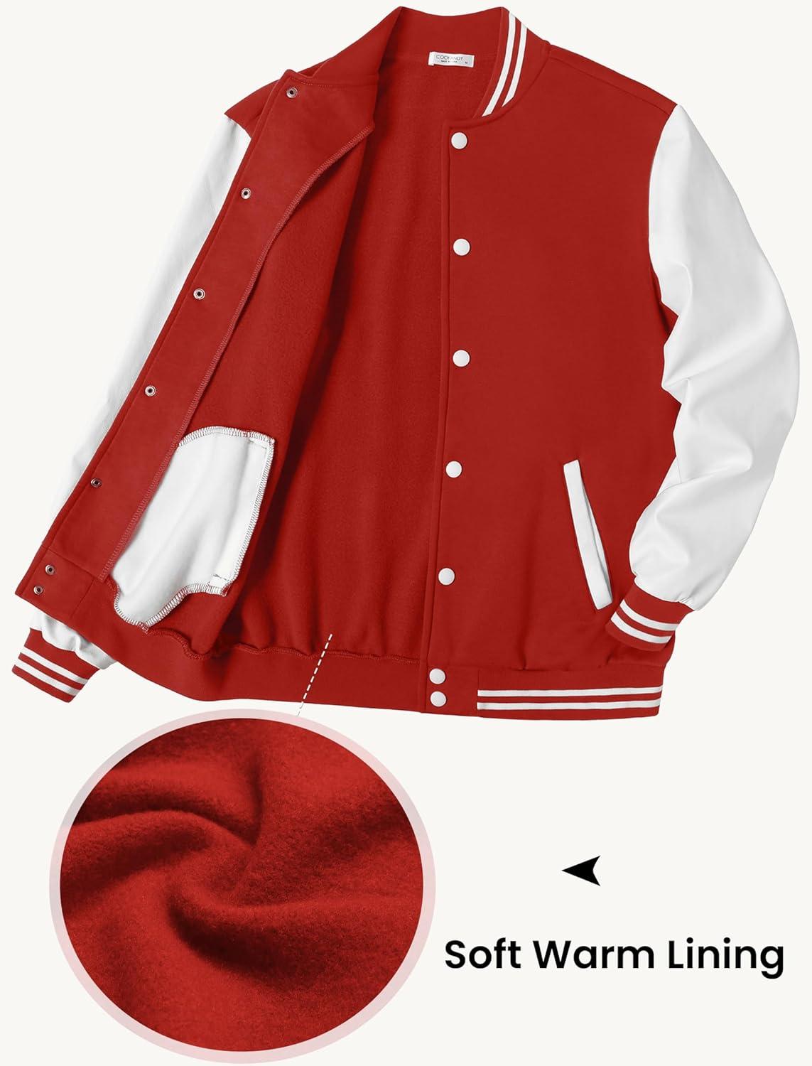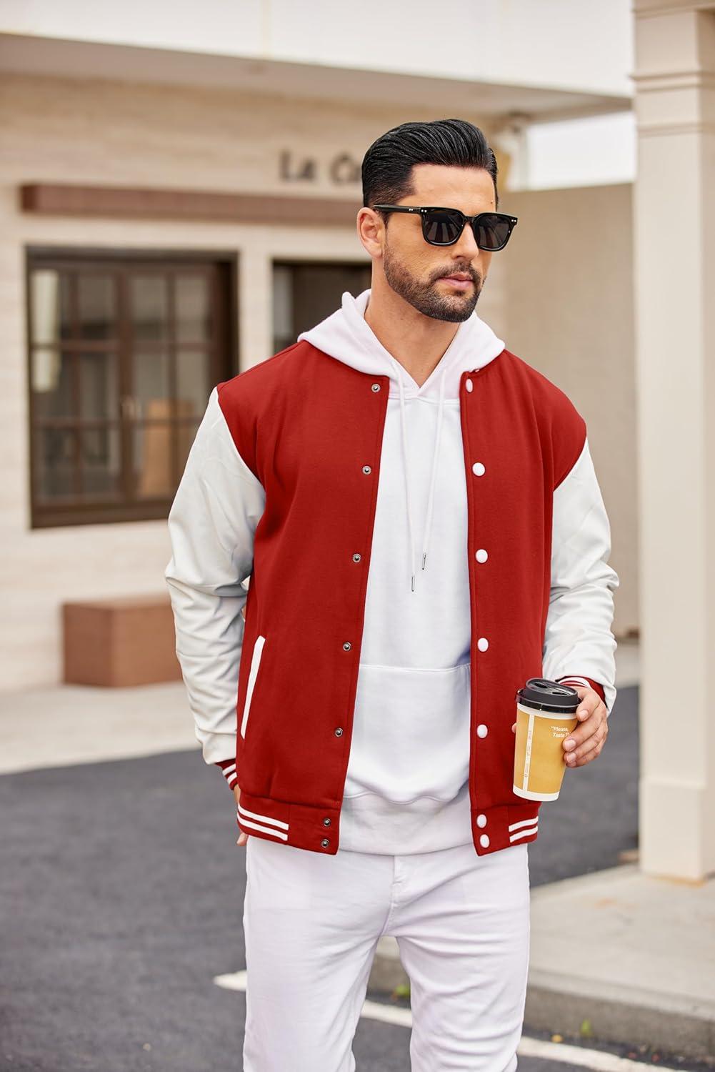 Don’t break the bank! Get the COOFANDY Mens Fashion Varsity Jackets Leather Sleeve Slim Fit College Baseball Letterman Bomber Coat(Red-white Sleeve) you want at a price you can afford during our markdown sale.