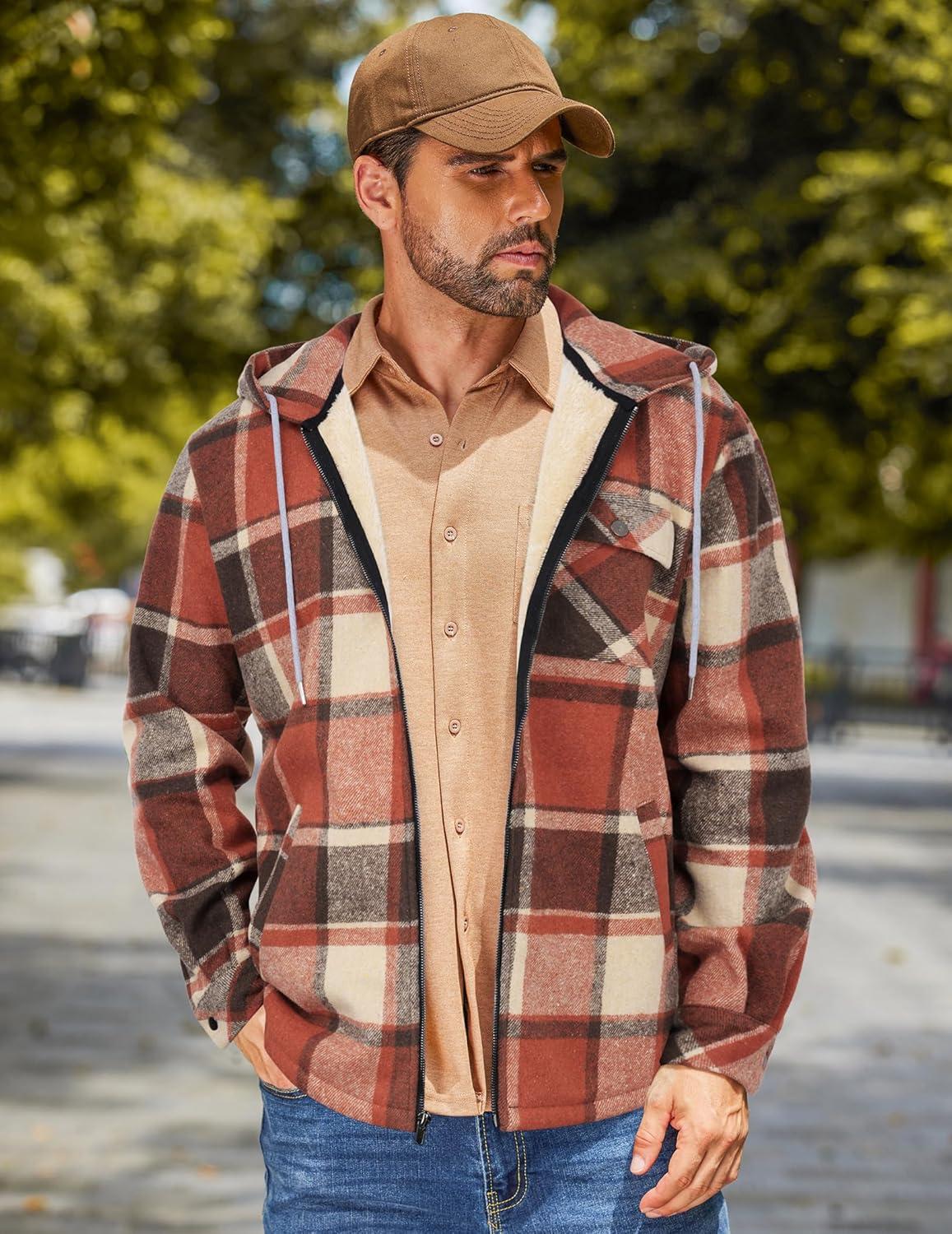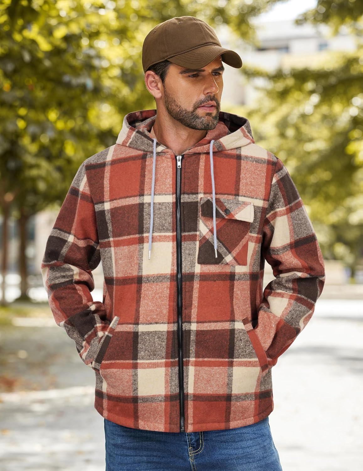Don’t miss out on our limited-time offer: buy COOFANDY Men’s Flannel Fleece Jacket Sherpa Lined Shirt Jacket Plaid Zip Up Hoodie Soft Warm Coat with Hood(A-orange Block), get {accessory} 50% off!