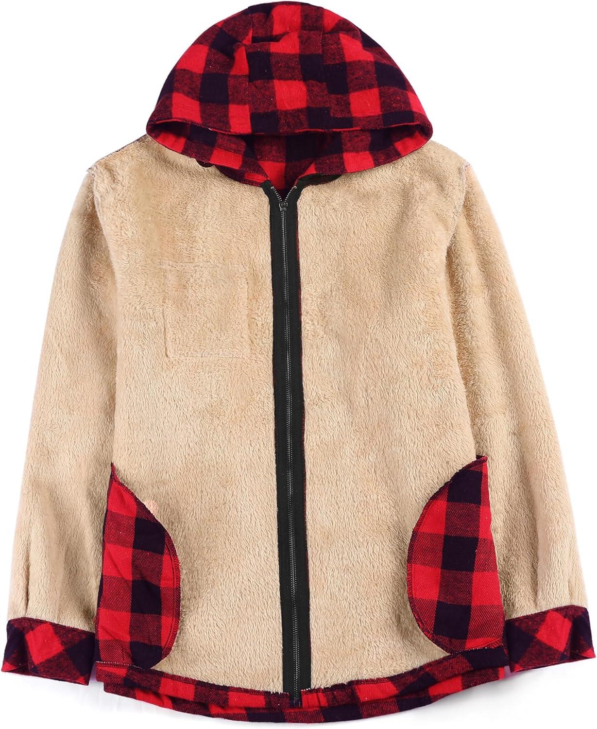 COOFANDY Men’s Flannel Fleece Jacket Sherpa Lined Shirt Jacket Plaid Zip Up Hoodie Soft Warm Coat with Hood(B-red Plaid)
