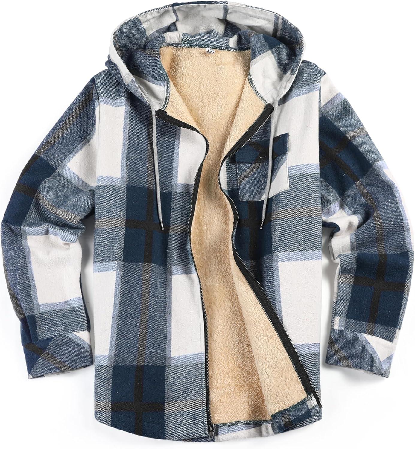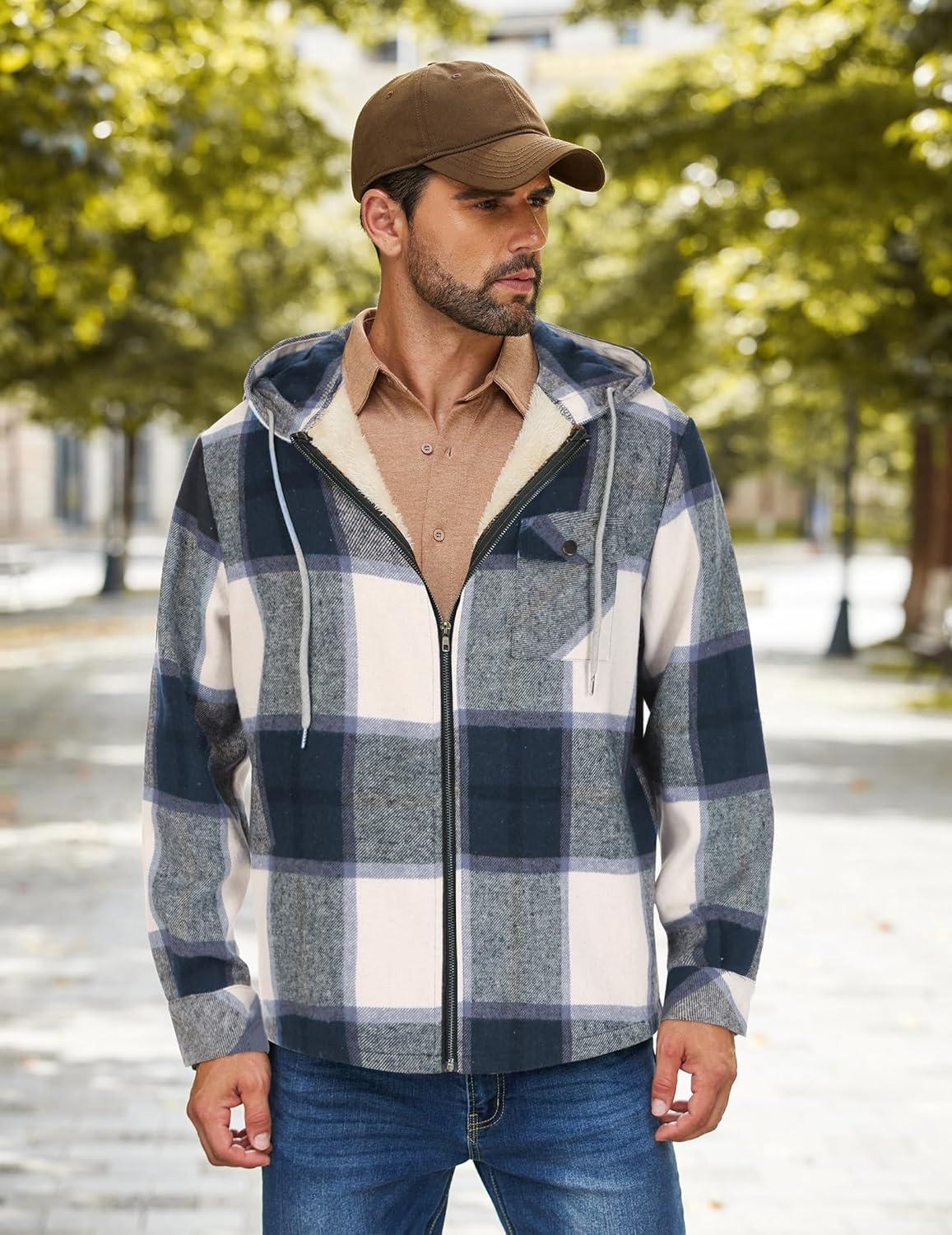 Get more for your money with our exclusive bundle deals on COOFANDY Men’s Flannel Fleece Jacket Sherpa Lined Shirt Jacket Plaid Zip Up Hoodie Soft Warm Coat with Hood(C-blue Block) and accessories.