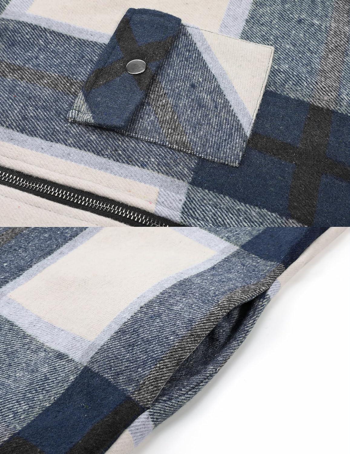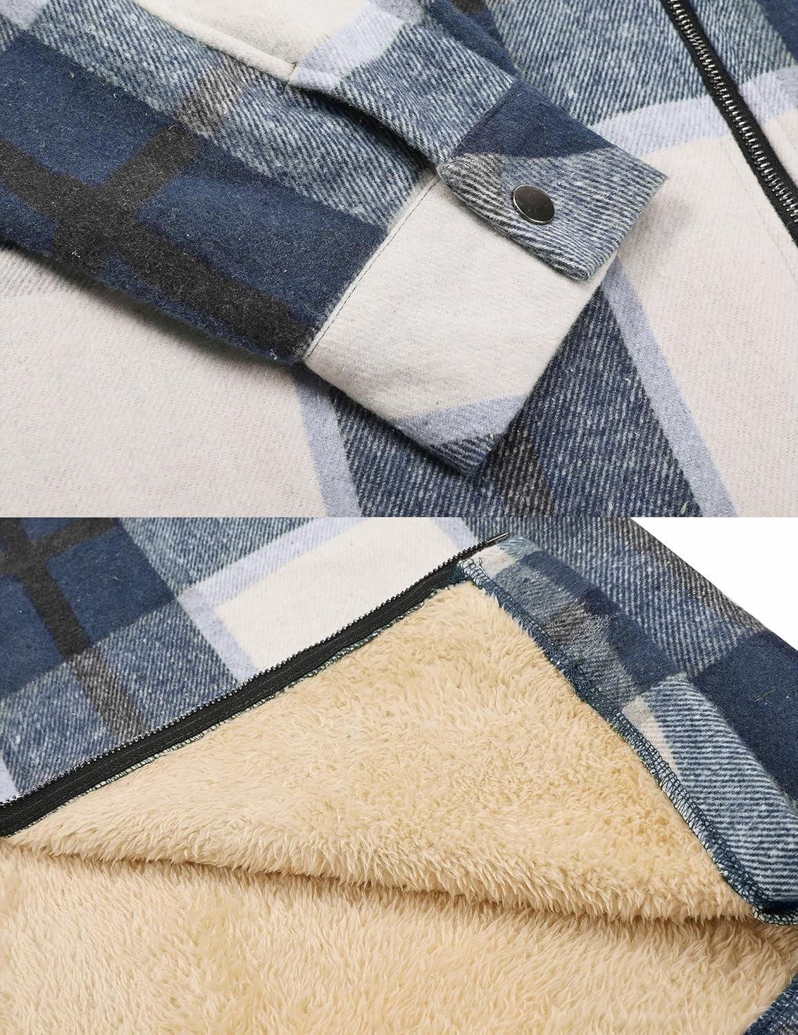 COOFANDY Men's Flannel Fleece Jacket Sherpa Lined Shirt Jacket Plaid Zip Up Hoodie Soft Warm Coat with Hood(C-blue Block)