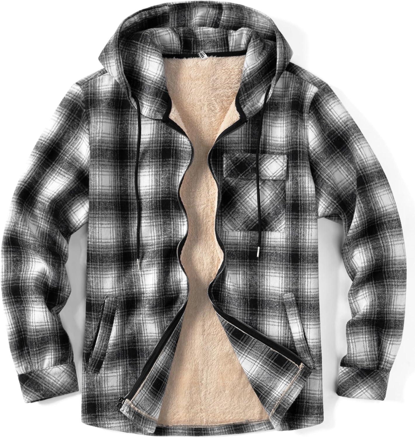 Be the first to review “COOFANDY Men’s Flannel Fleece Jacket Sherpa Lined Shirt Jacket Plaid Zip Up Hoodie Soft Warm Coat with Hood(G-black White Line)”