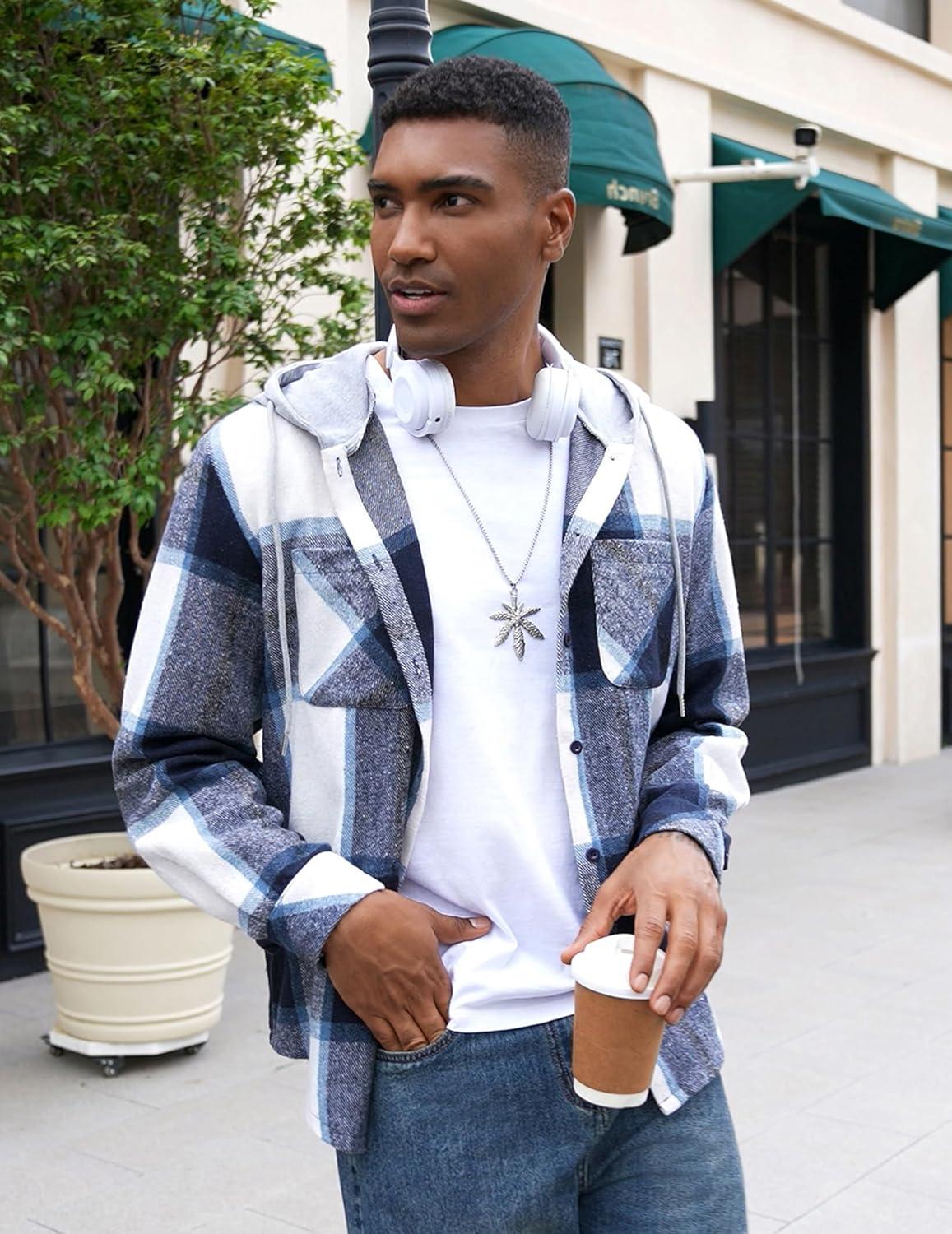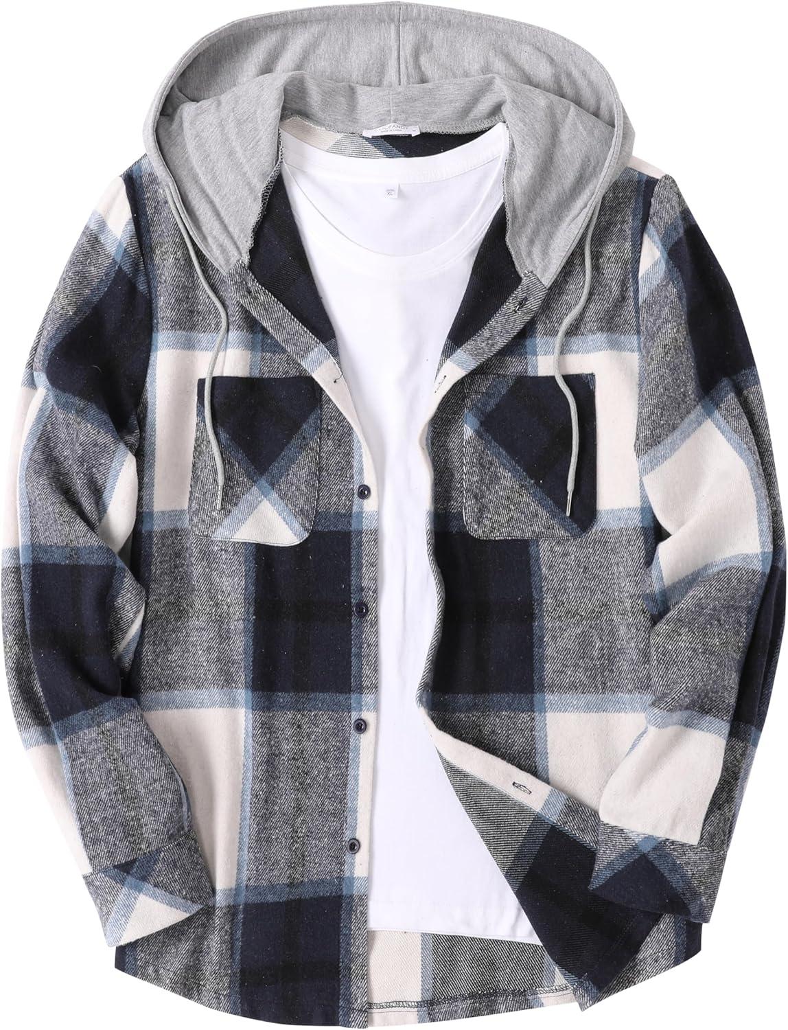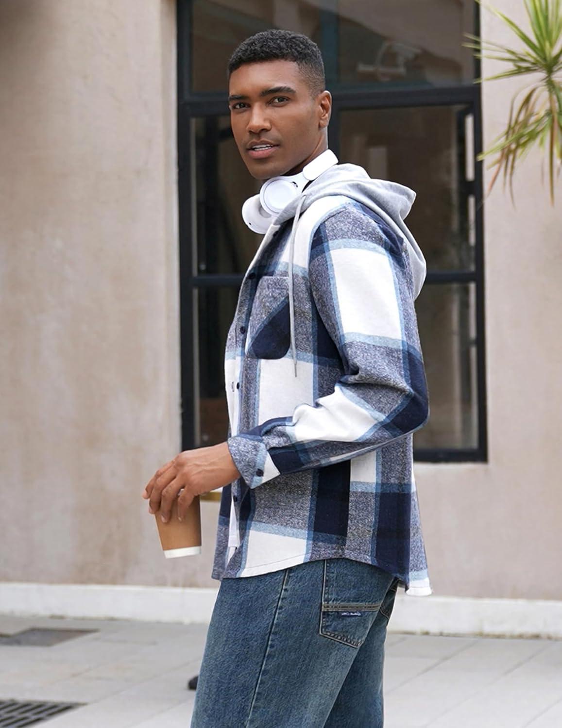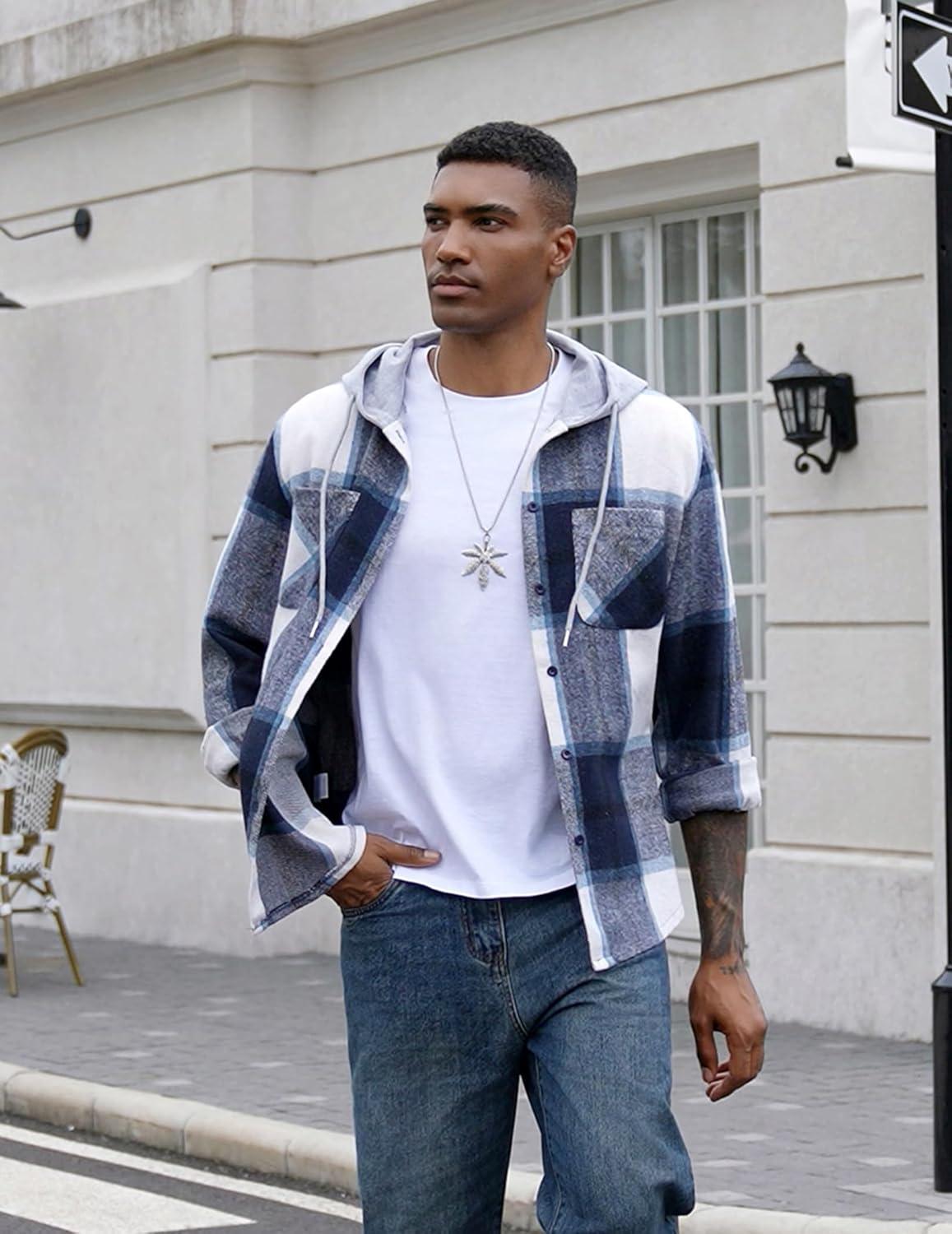 Introducing the Ultimate Men's Flannel Plaid Hoodie ShirtPremium Fabric for Ultimate ComfortCrafted from high-quality, soft flannel fabric, our Men's Flannel Plaid Hoodie Shirt Jacket offers a luxurious, skin-friendly feel. This versatile piece ensures all-day comfort and warmth, making it perfect for autumn, spring, and even chilly winter days. Experience the perfect blend of softness and durability with every wear.Thoughtful and Stylish DesignOur hoodie shirt jacket features a classic plaid pattern with a modern twist. Designed with a tailored fit, it includes a hood, adjustable cuffs, and a 7-button closure, providing both style and practicality. The two chest pockets add a touch of functionality, making it ideal for both casual and formal settings. Exude effortless style and mature charm with this must-have wardrobe staple.Versatile Styling OptionsThis plaid button-up shirt is a wardrobe essential that effortlessly adapts to various styles and occasions. Pair it with jeans, a t-shirt, and boots for a casual look, or dress it up with a sweater, trousers, and leather shoes for a refined ensemble. For a relaxed vibe, combine it with denim or corduroy pants. Its versatility allows you to create stylish outfits that suit any occasion.S Chest 43.7 inch–Waist 41.3 inch–Shoulder 18.8 inch–Sleeve 25.2 inch–Center Back Length 29.3 inchM Chest 45.7 inch–Waist 43.3 inch–Shoulder 19.3 inch–Sleeve 25.6 inch–Center Back Length 29.9 inchL Chest 48.7 inch–Waist 46.3 inch–Shoulder 20.0 inch–Sleeve 26.0 inch–Center Back Length 30.5 inchXL Chest 51.7 inch–Waist 49.3 inch–Shoulder 20.7 inch–Sleeve 26.4 inch–Center Back Length 31.1 inchXXL Chest 54.6 inch–Waist 52.3 inch–Shoulder 21.4 inch–Sleeve 26.8 inch–Center Back Length 31.7 inchXXXL Chest 57.6 inch–Waist 55.3 inch–Shoulder 22.1 inch–Sleeve 26.8 inch–Center Back Length 31.7 inch