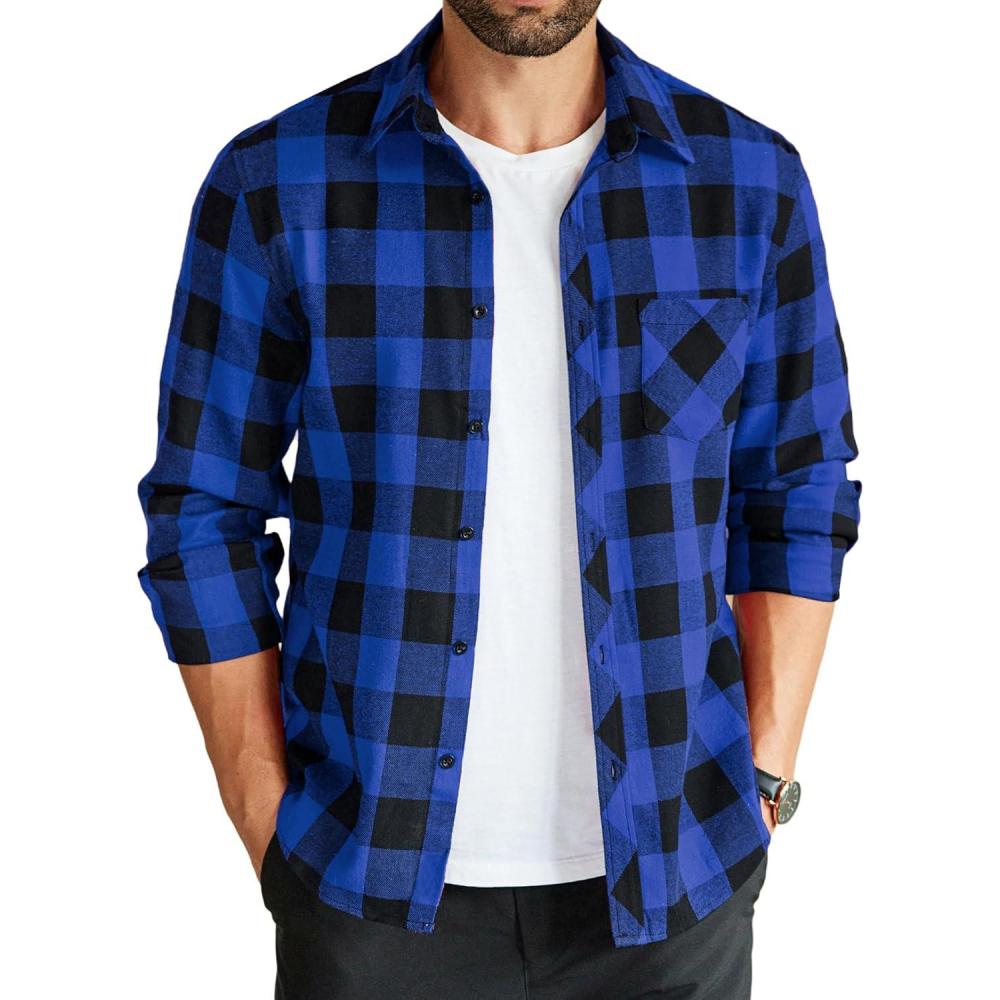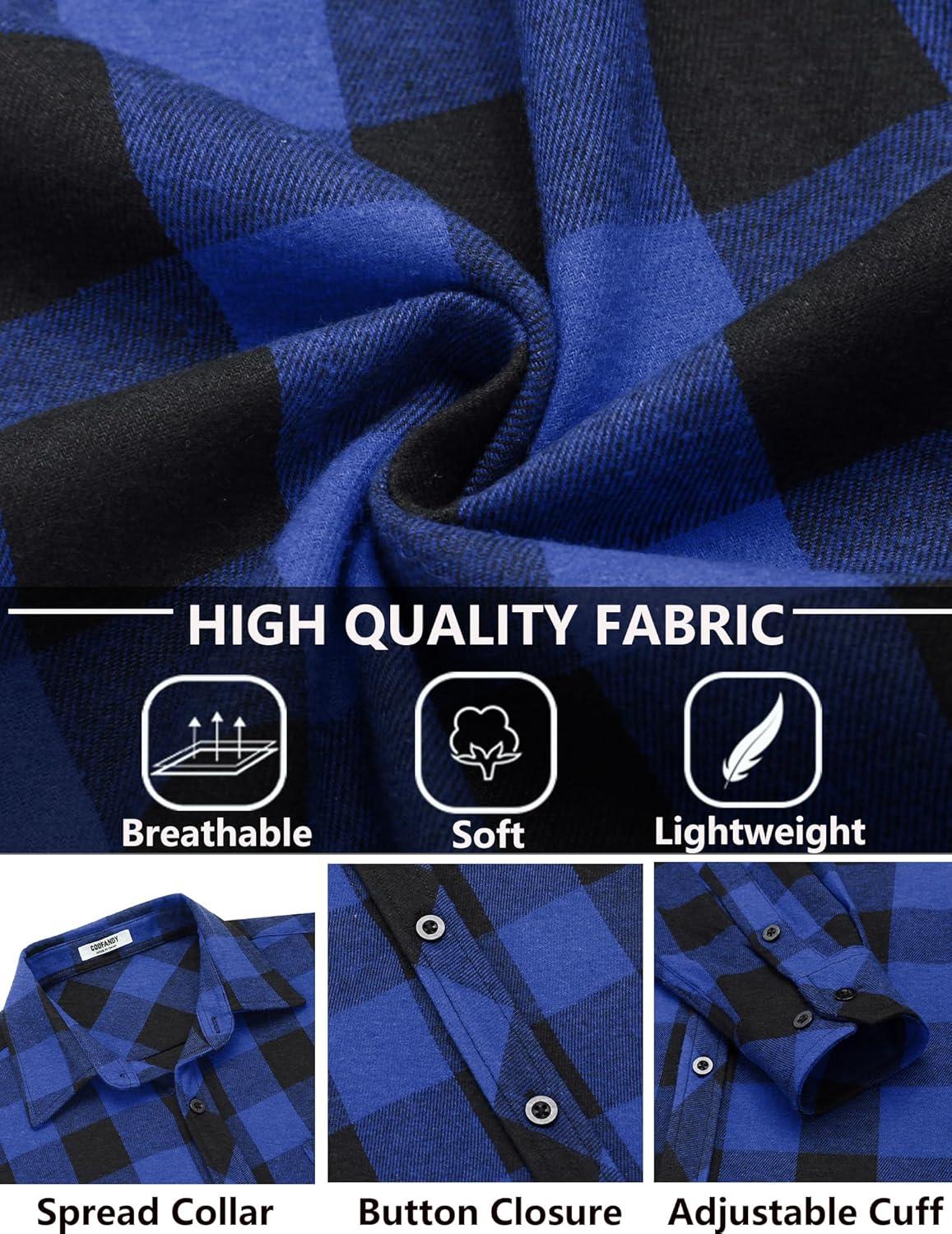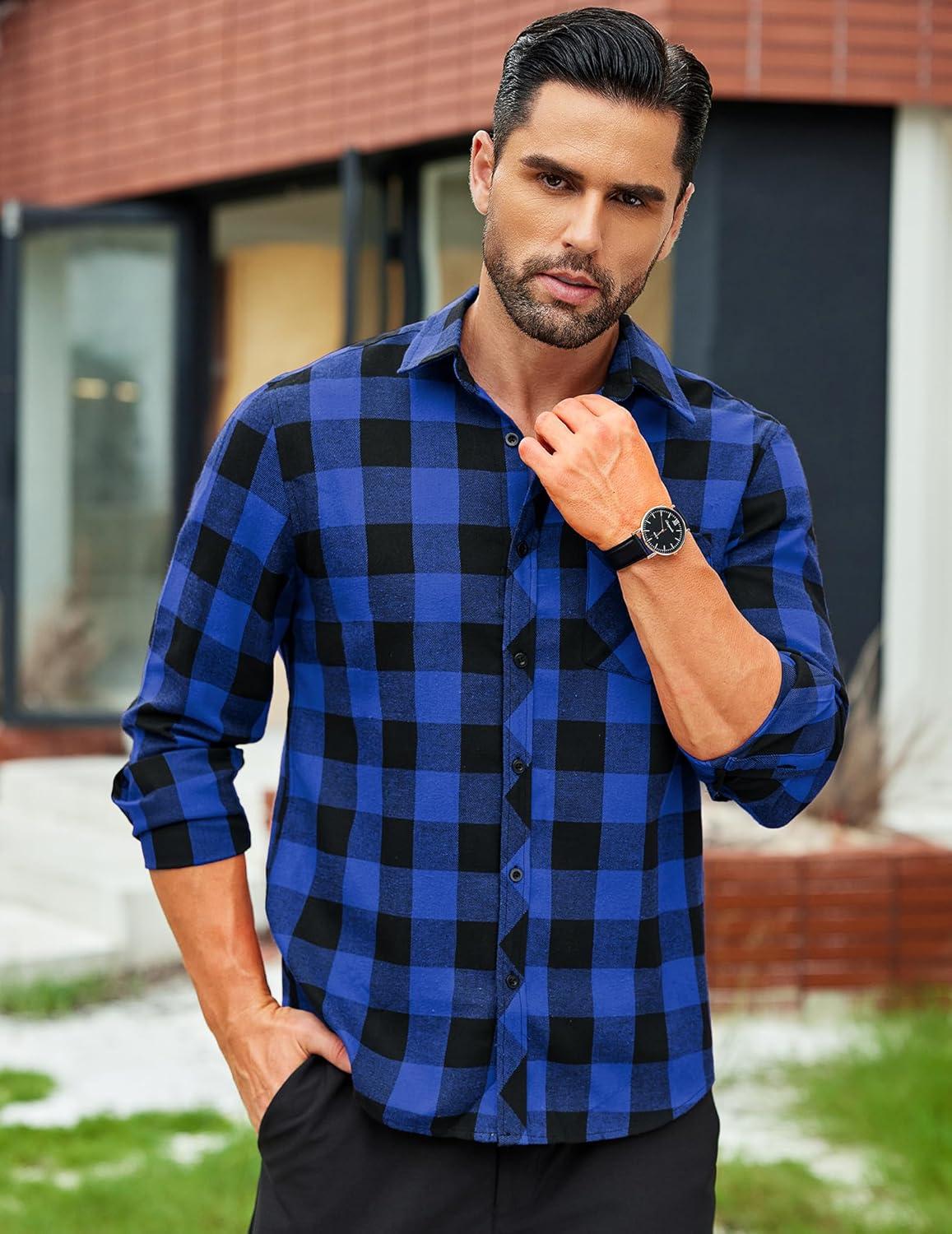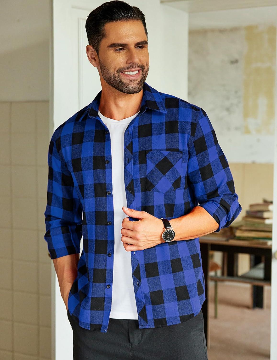 COOFANDY Men’s Flannel Plaid Shirts Long Sleeve Button Down Shirts Casual Fall Shirt Jacket(Blue)