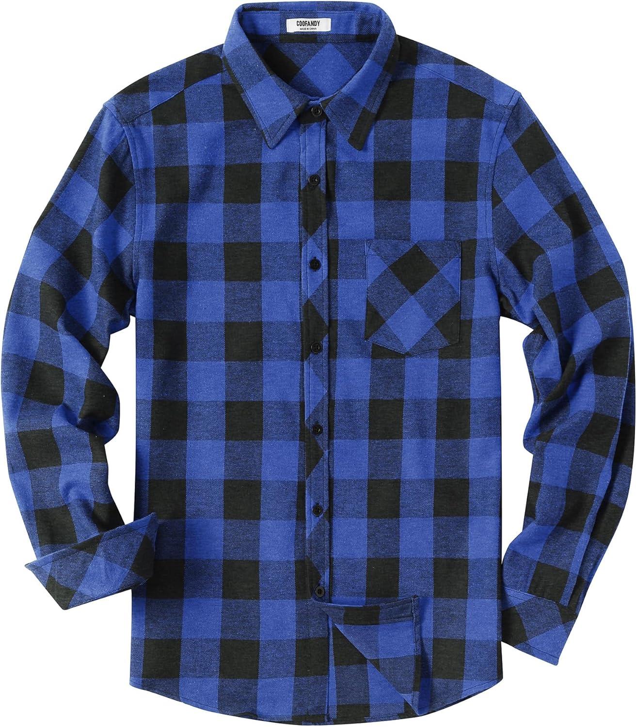 COOFANDY Men's Flannel Plaid Shirts Long Sleeve Button Down Shirts Casual Fall Shirt Jacket(Blue)