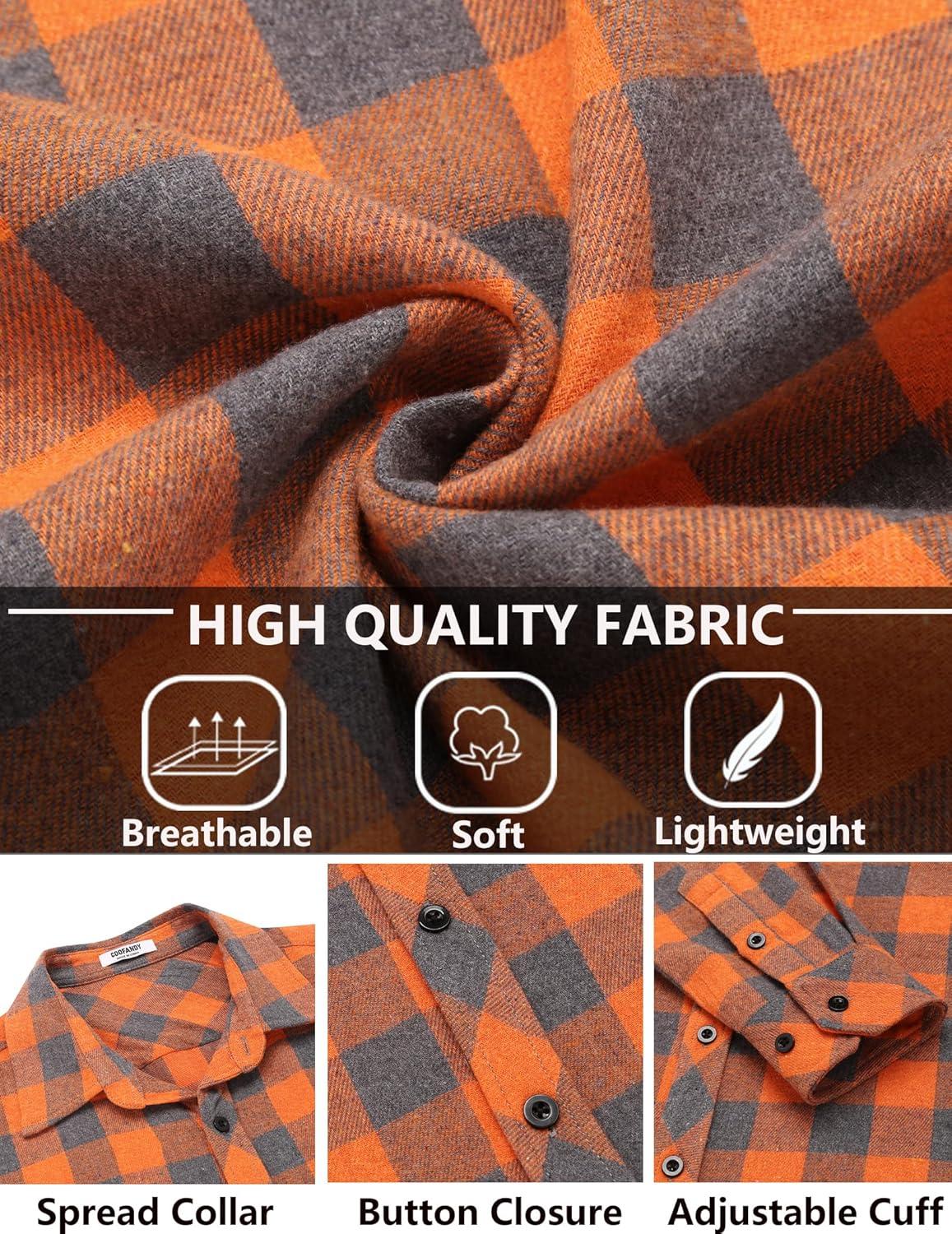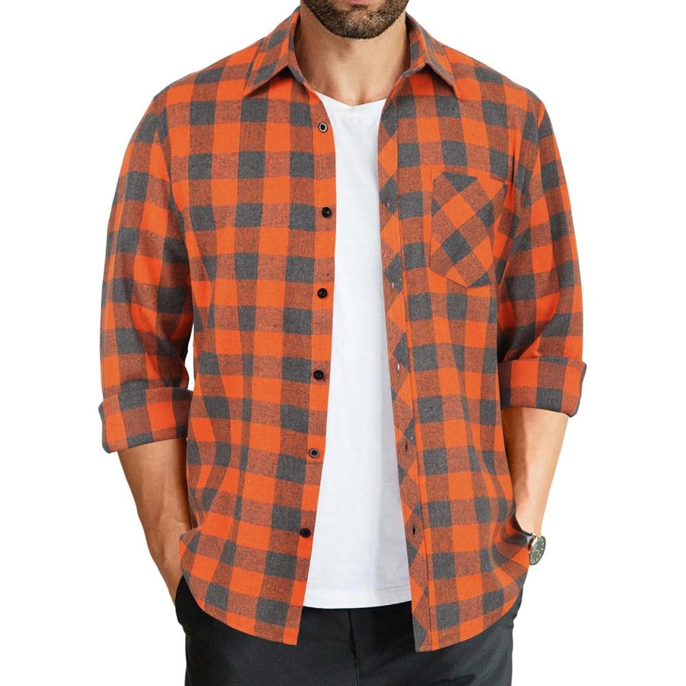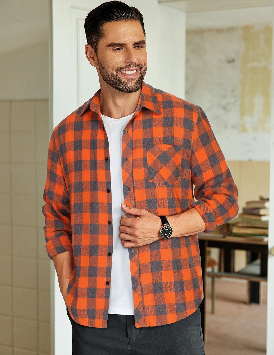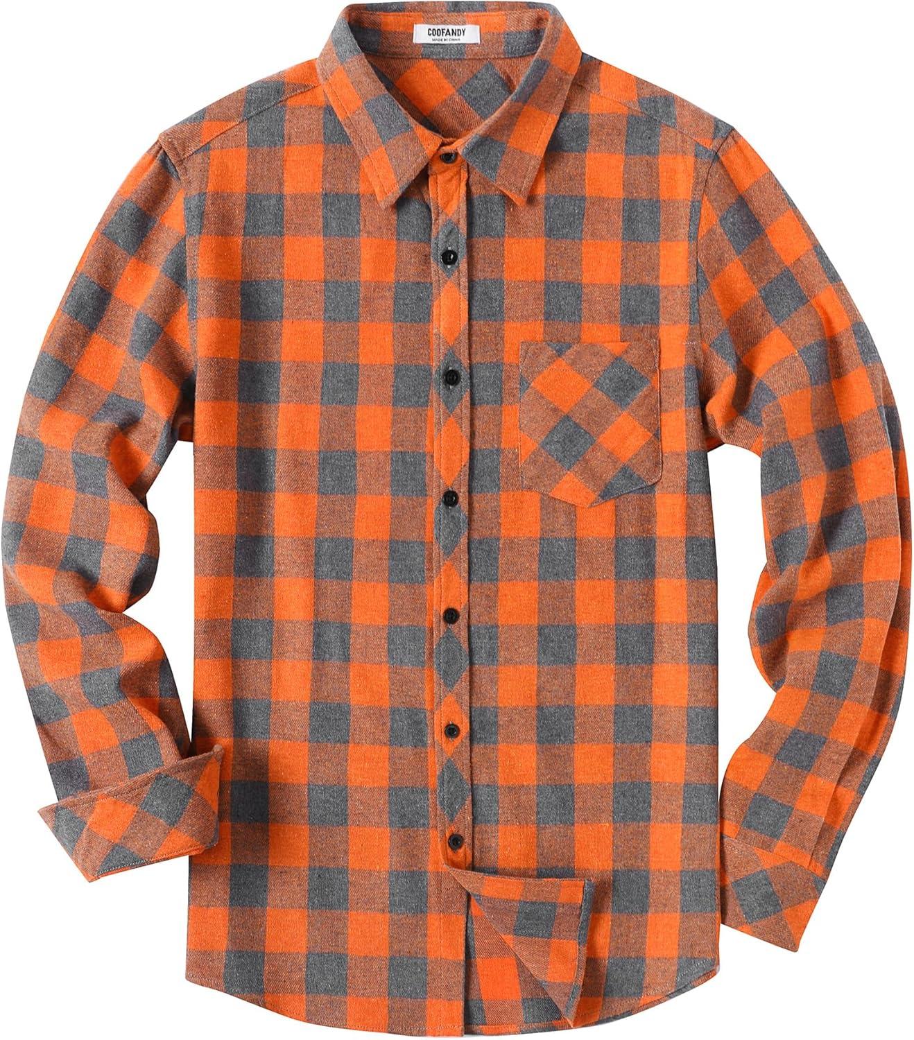 COOFANDY Men’s Flannel Plaid Shirts Long Sleeve Button Down Shirts Casual Fall Shirt Jacket(Orange)