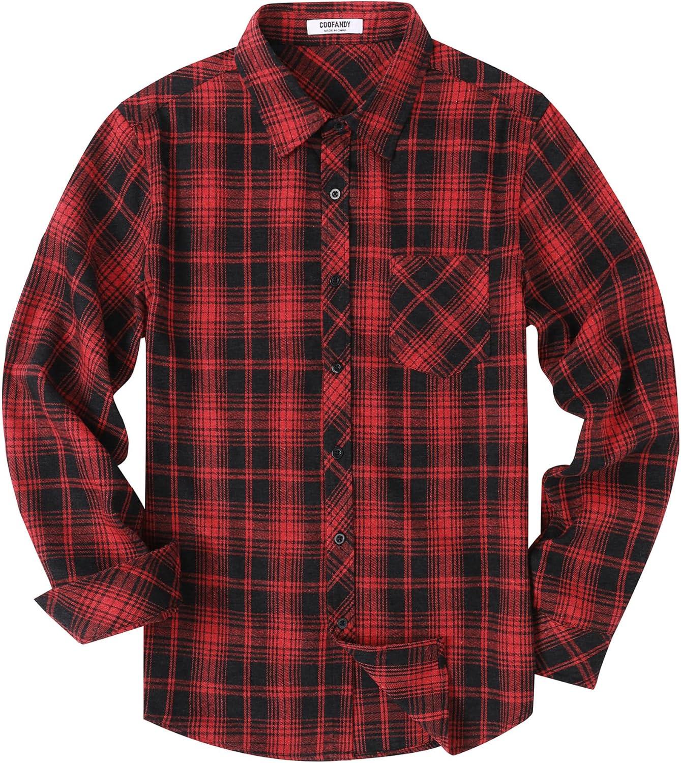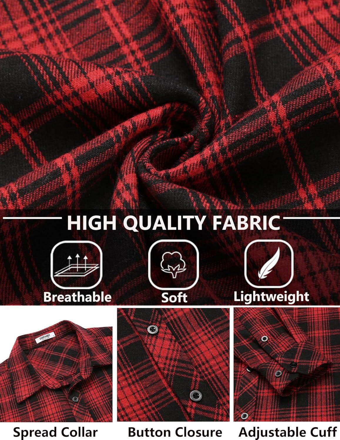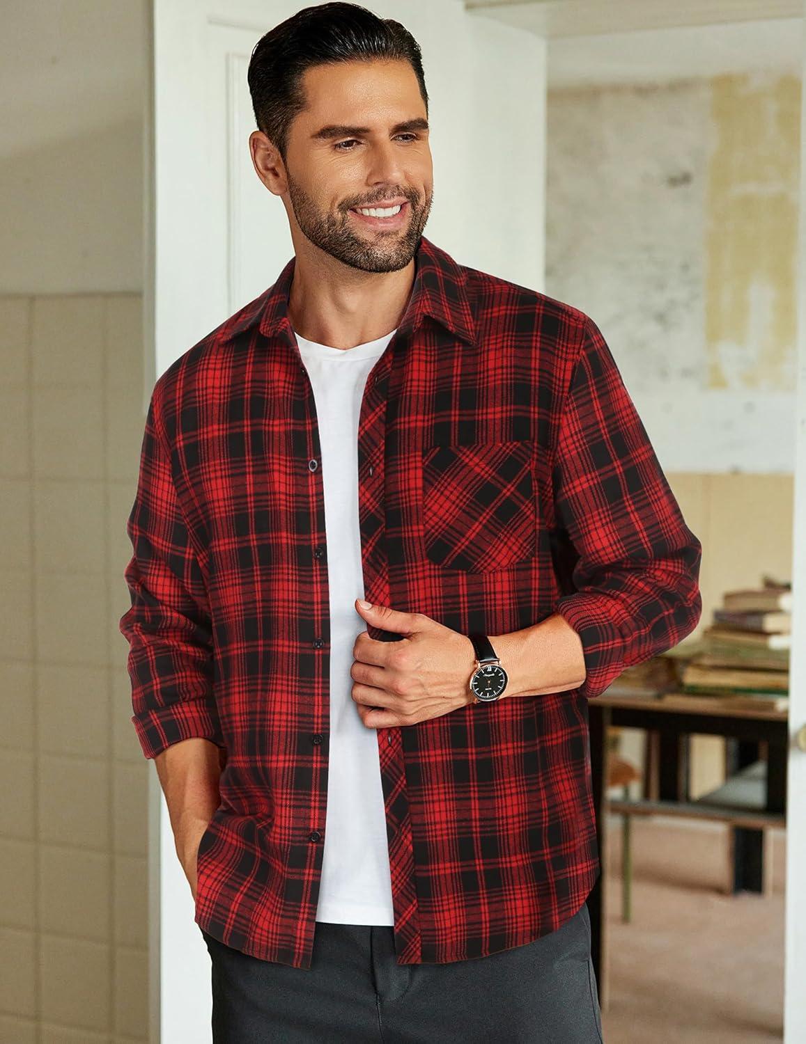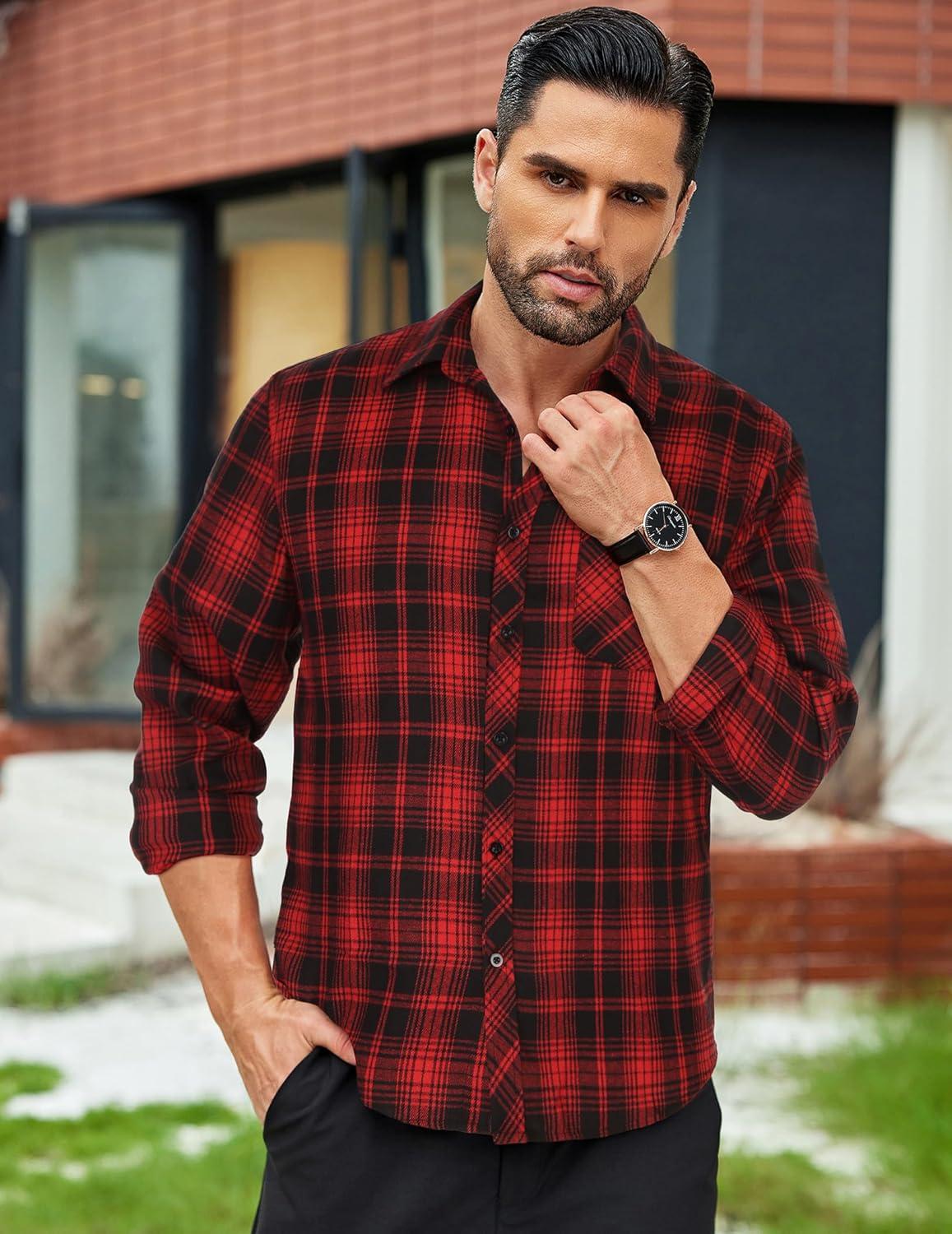 COOFANDY Men's Flannel Plaid Shirts Long Sleeve Button Down Shirts Casual Fall Shirt Jacket(Red Black)