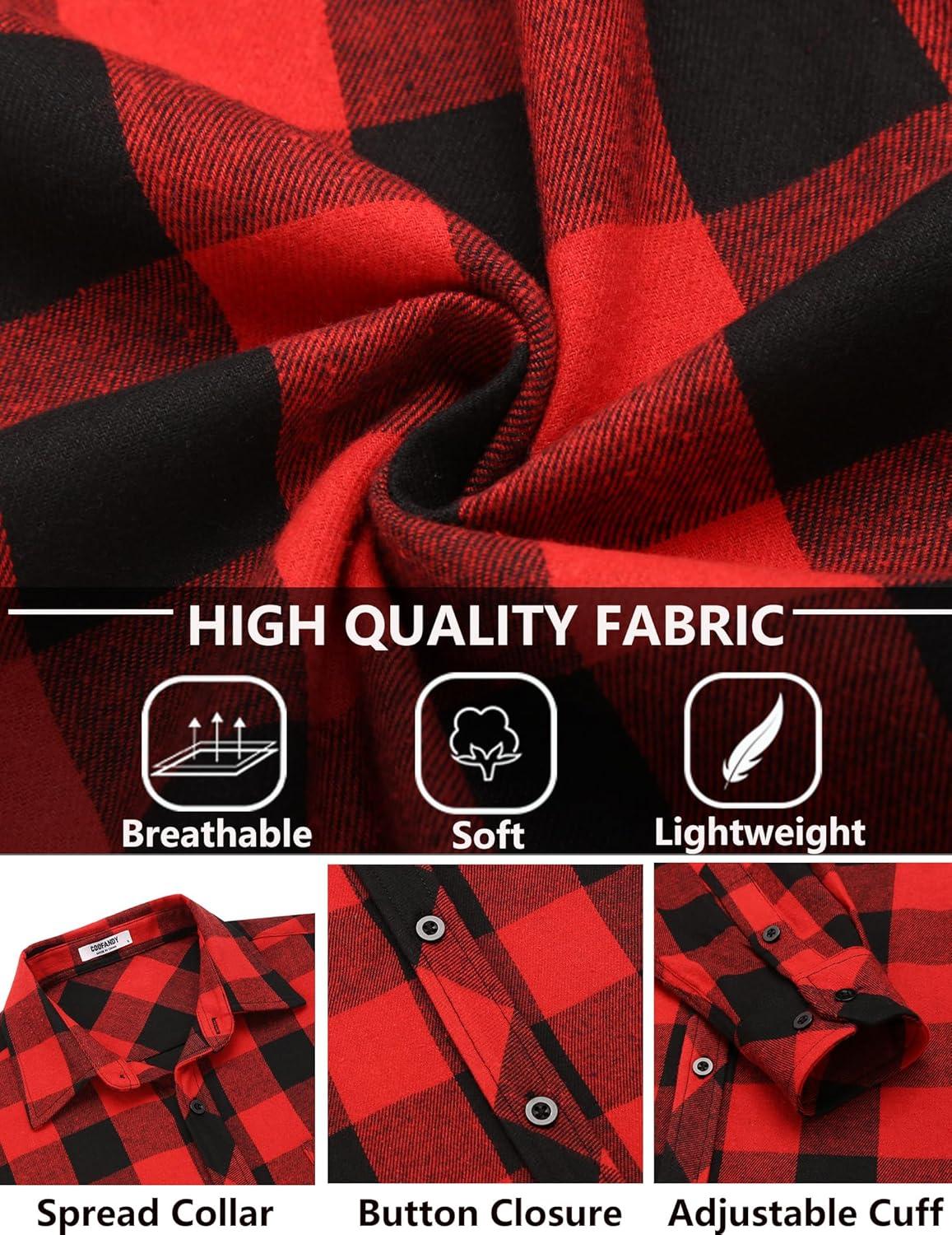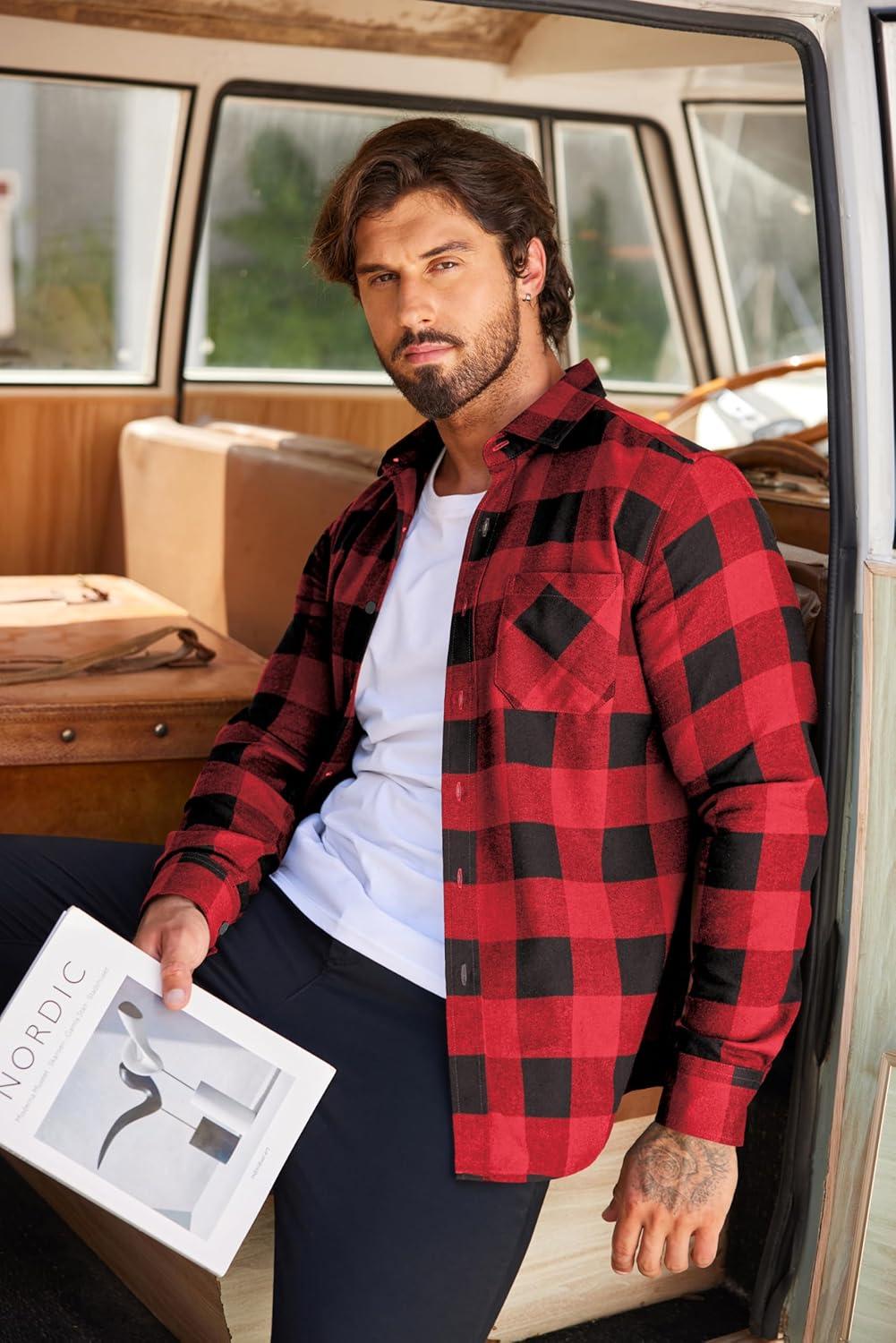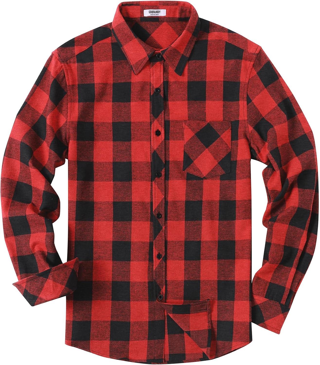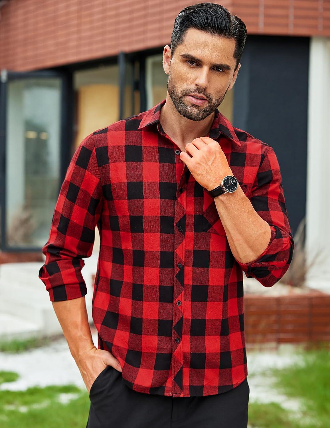 COOFANDY Men’s Flannel Plaid Shirts Long Sleeve Button Down Shirts Casual Fall Shirt Jacket(Red Black)