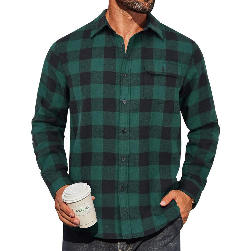 COOFANDY Mens Flannel Plaid Shirts Long Sleeve Casual Button Down Cotton Shirt with Pocket(Green Black Plaid)