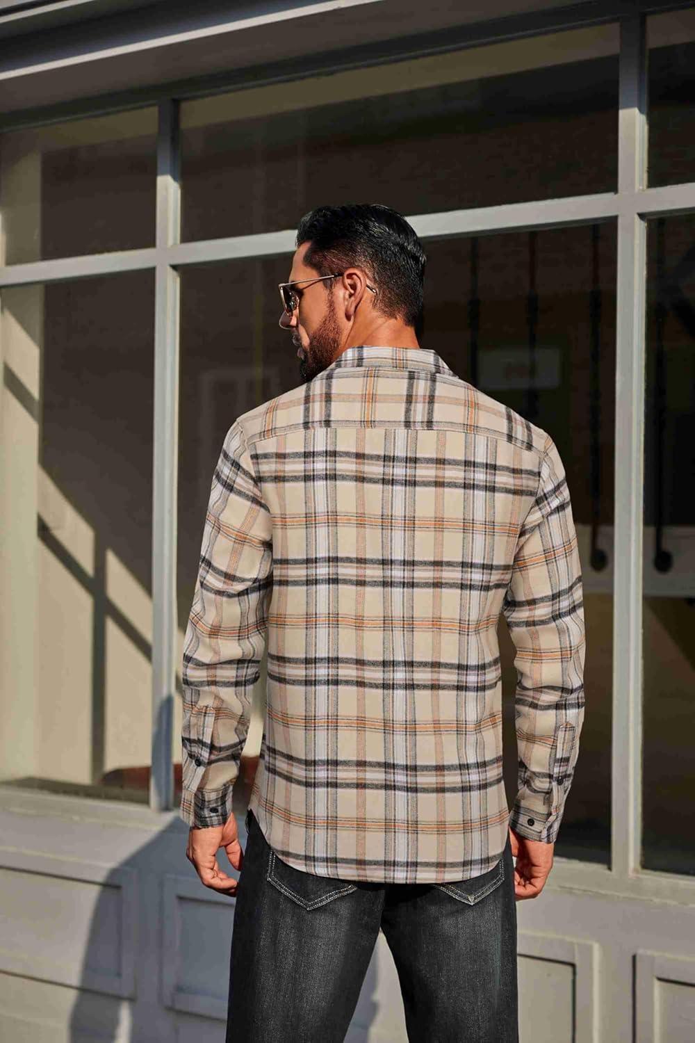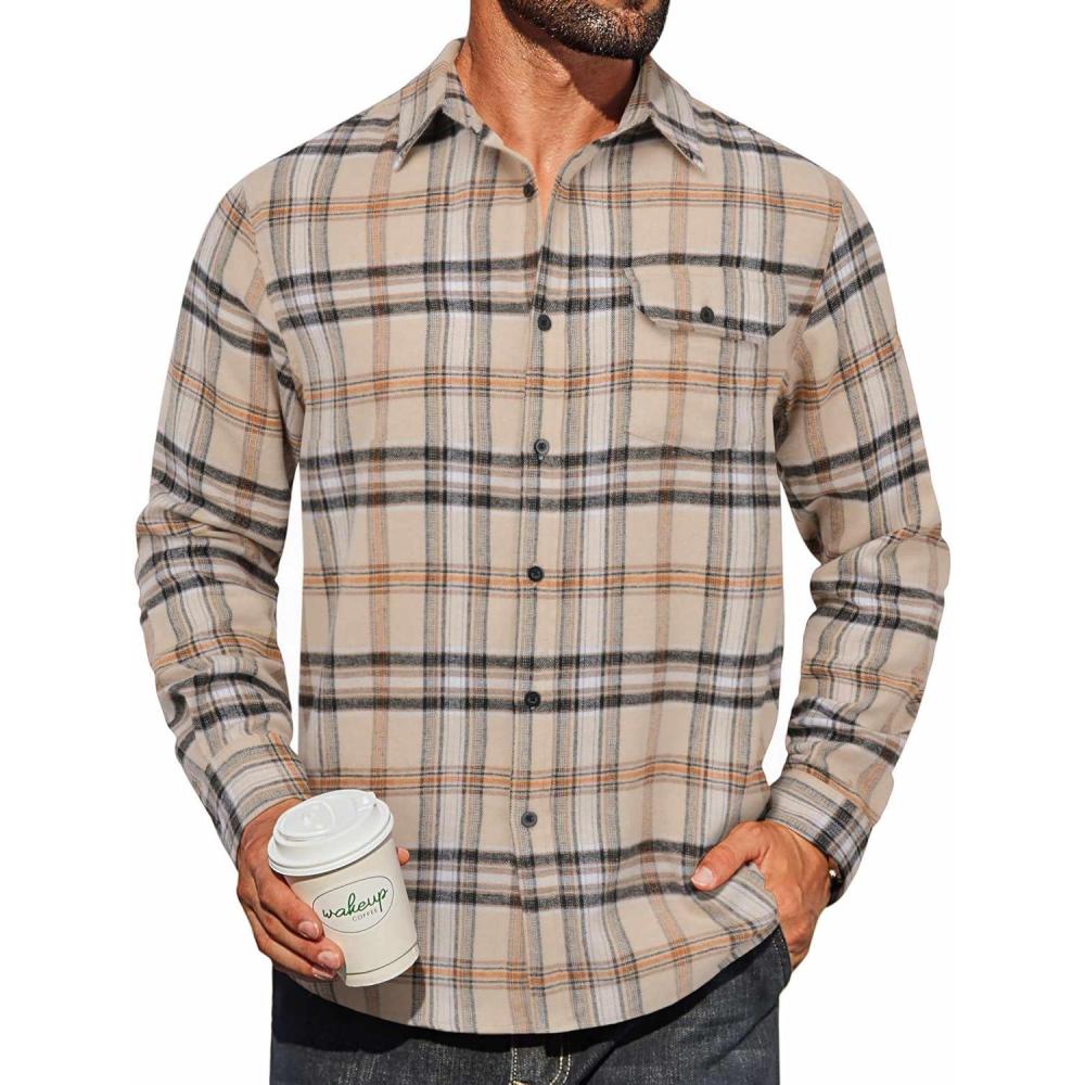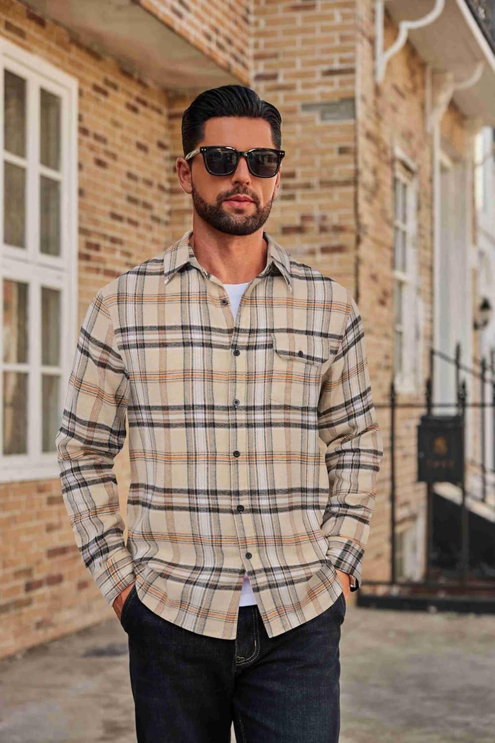 COOFANDY Mens Flannel Plaid Shirts Long Sleeve Casual Button Down Cotton Shirt with Pocket(Khaki Black Plaid)