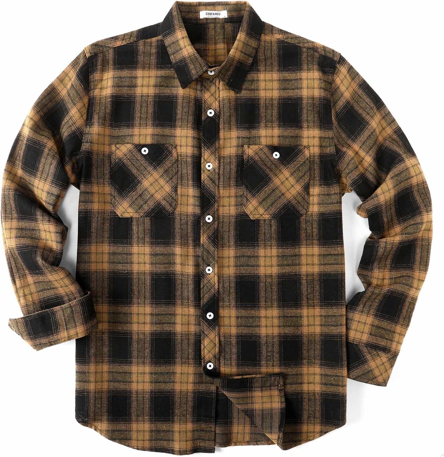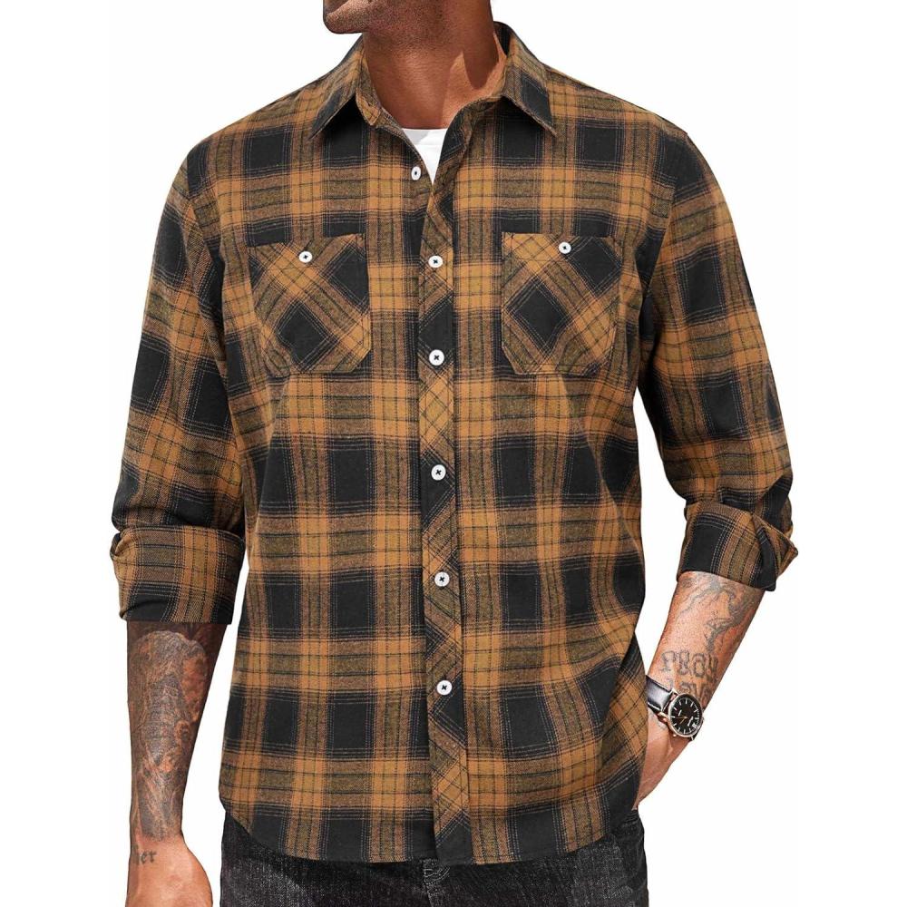 COOFANDY Men's Flannel Plaid Shirts Long Sleeve Casual Button Down Shirt with Pockets(Black Brown)