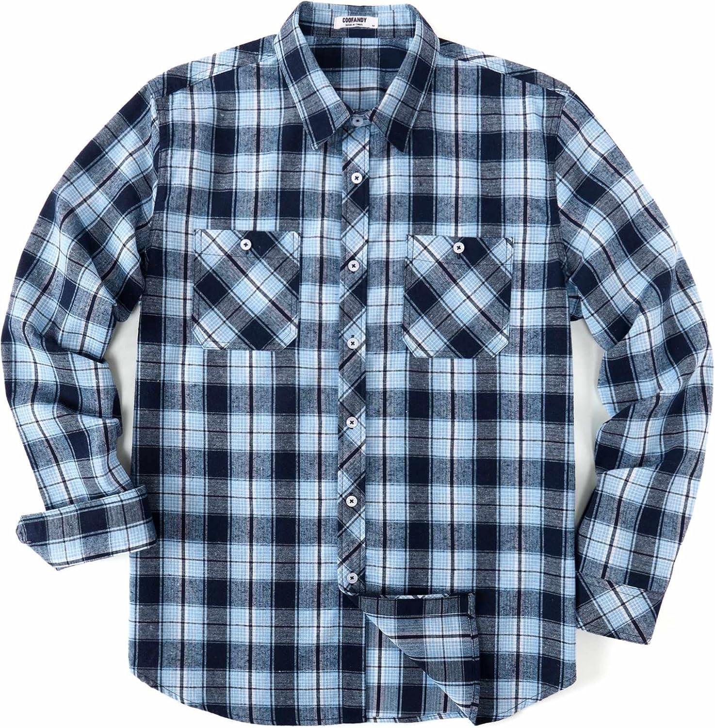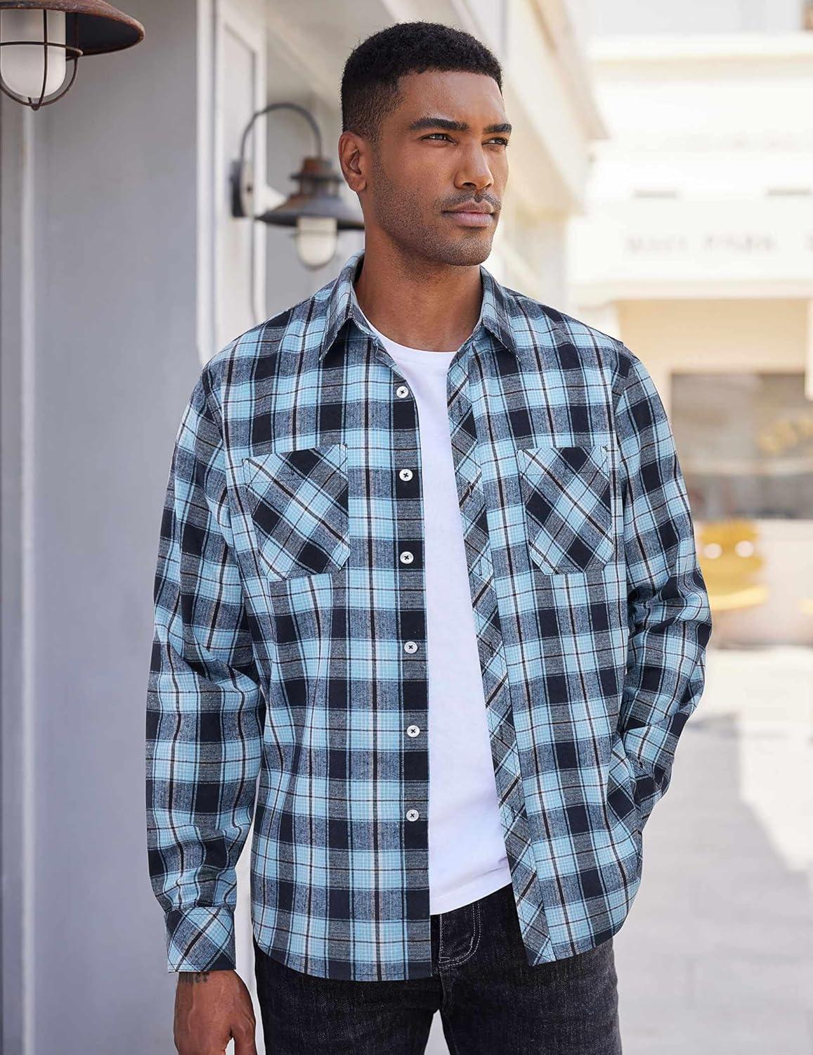 COOFANDY Men’s Flannel Plaid Shirts Long Sleeve Casual Button Down Shirt with Pockets(Blue)