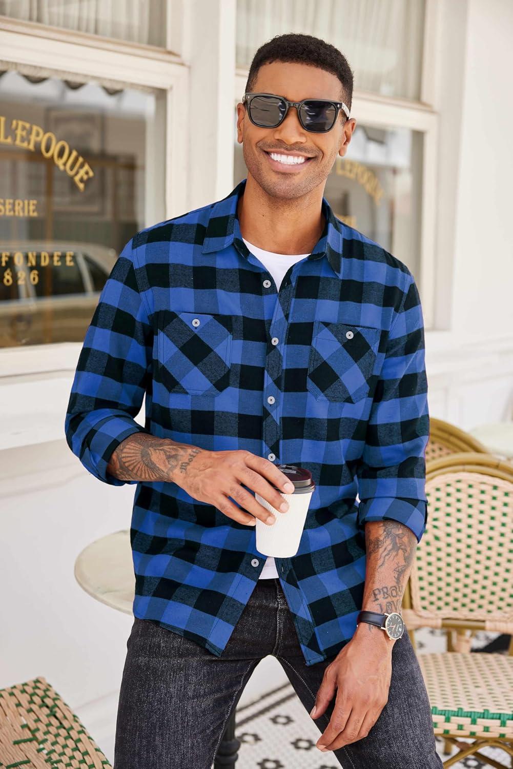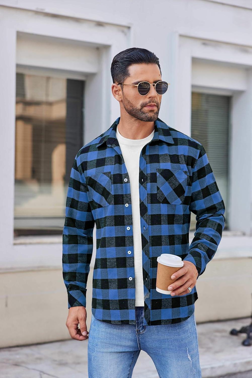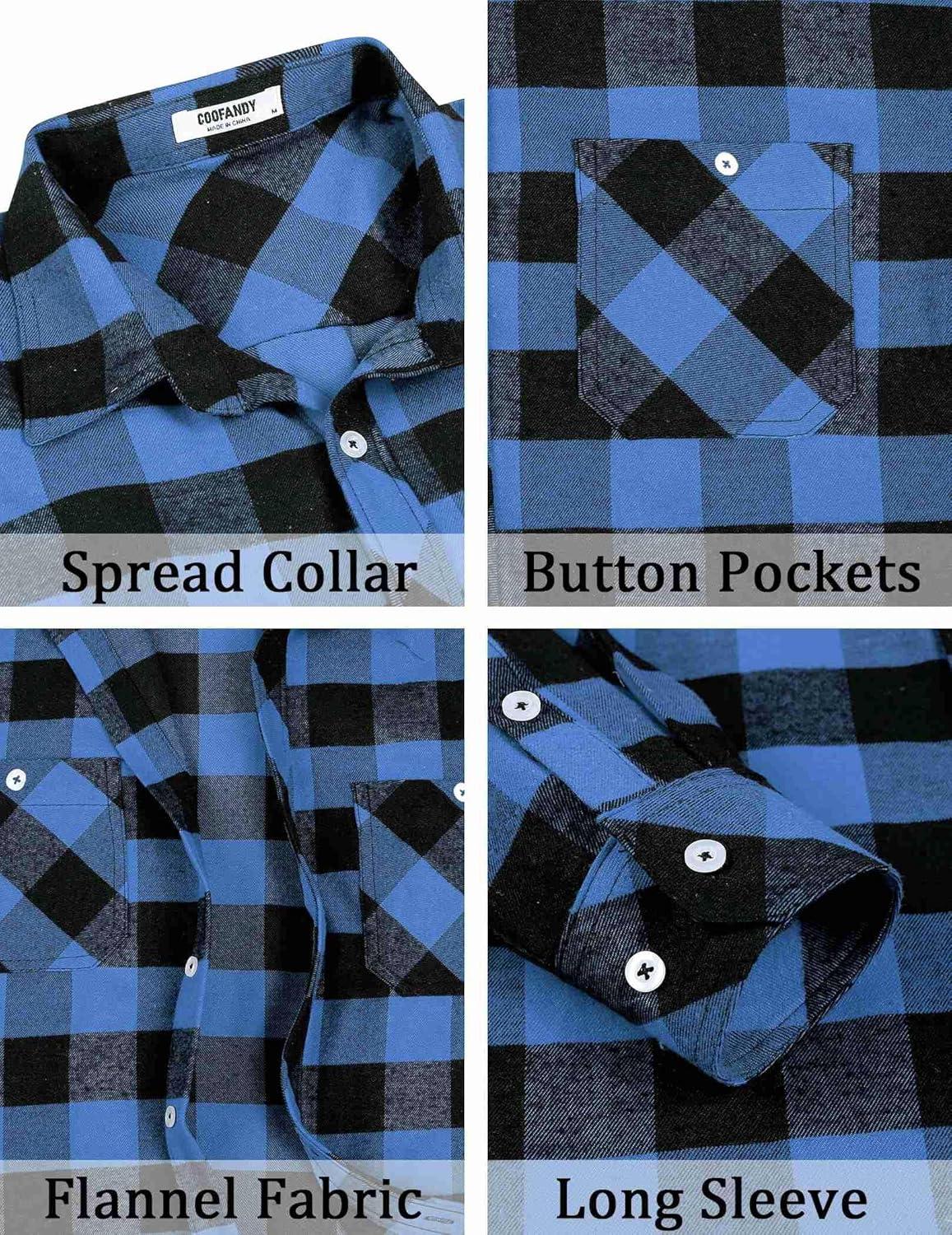 COOFANDY Men's Flannel Plaid Shirts Long Sleeve Casual Button Down Shirt with Pockets(Blue)