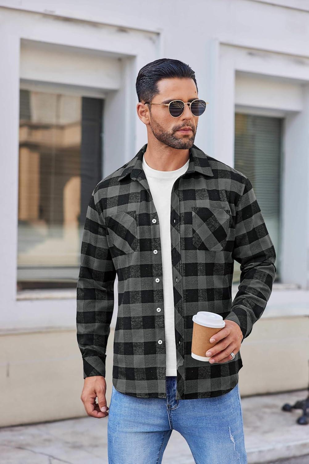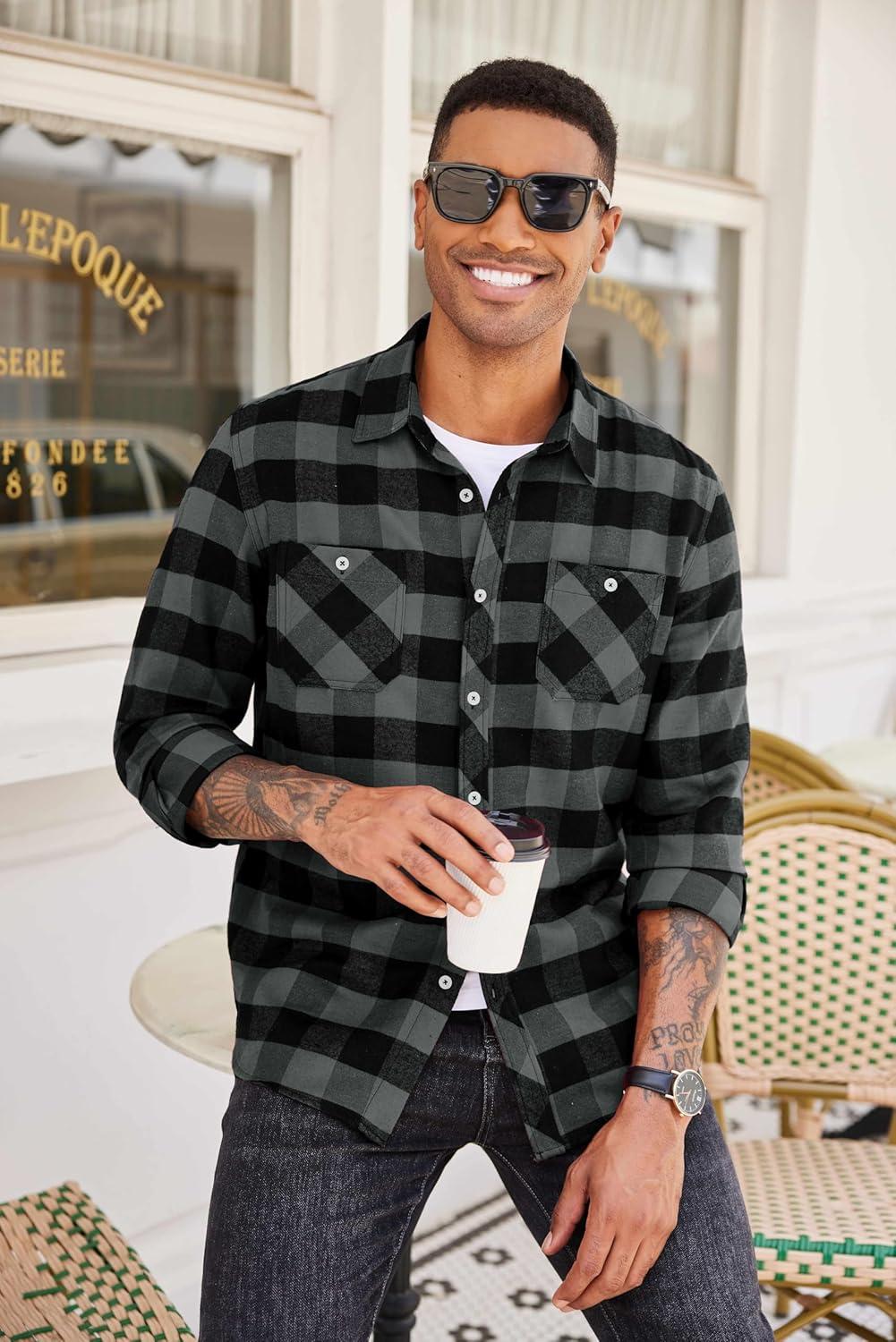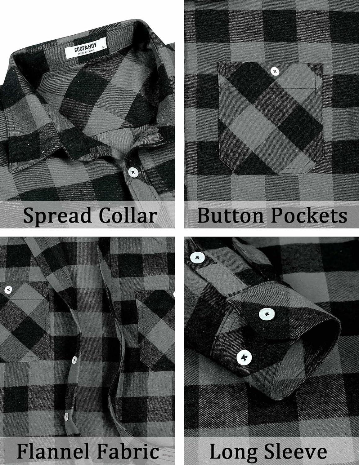 COOFANDY Men's Flannel Plaid Shirts Long Sleeve Casual Button Down Shirt with Pockets(Dark Grey)