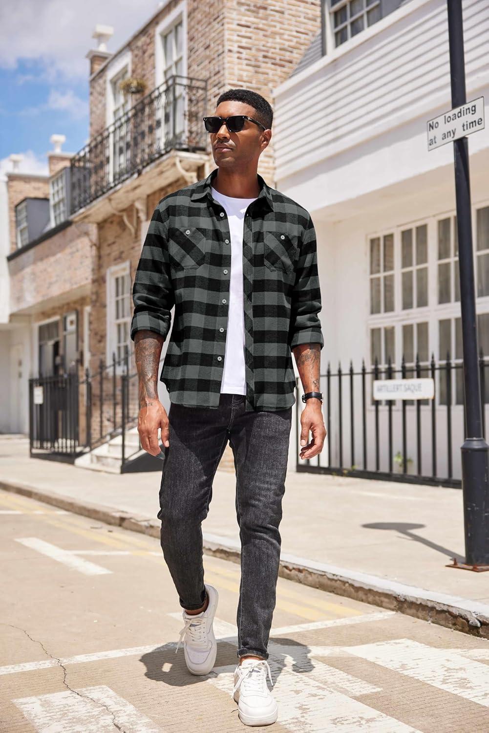 COOFANDY Men’s Flannel Plaid Shirts Long Sleeve Casual Button Down Shirt with Pockets(Dark Grey)
