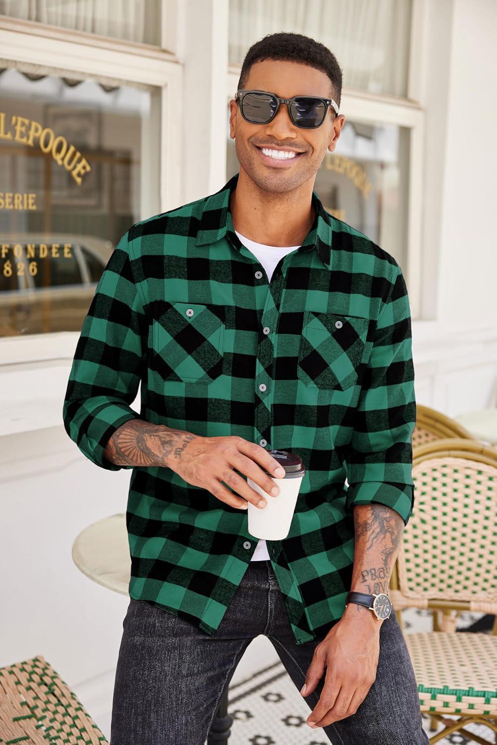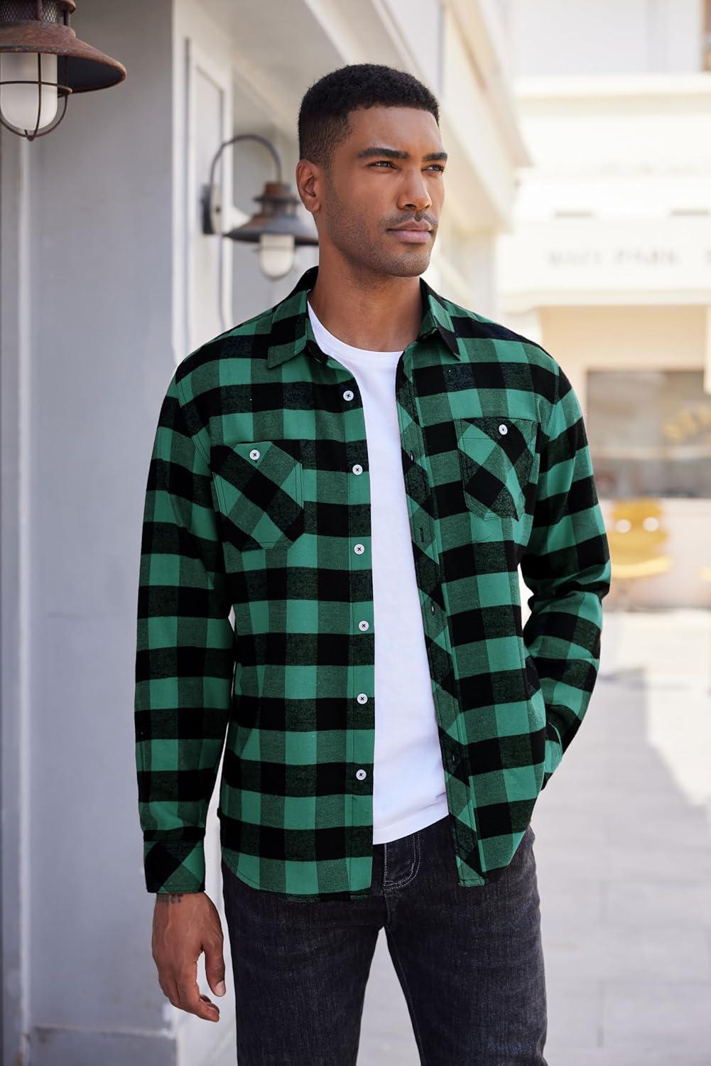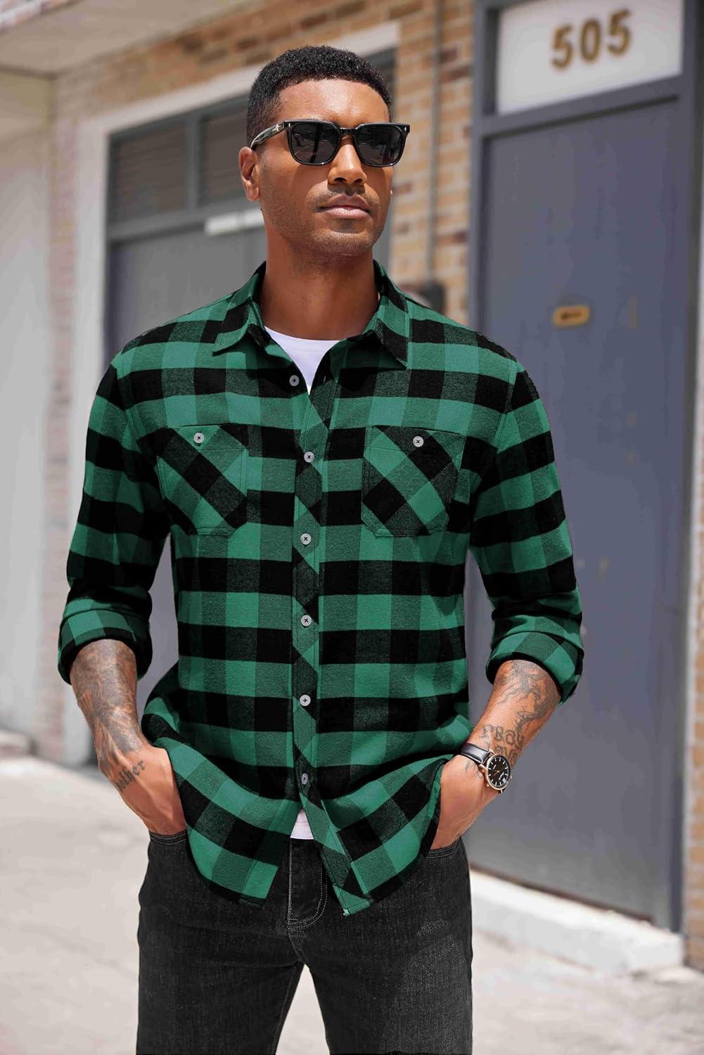COOFANDY Men's Flannel Plaid Shirts Long Sleeve Casual Button Down Shirt with Pockets(Green)