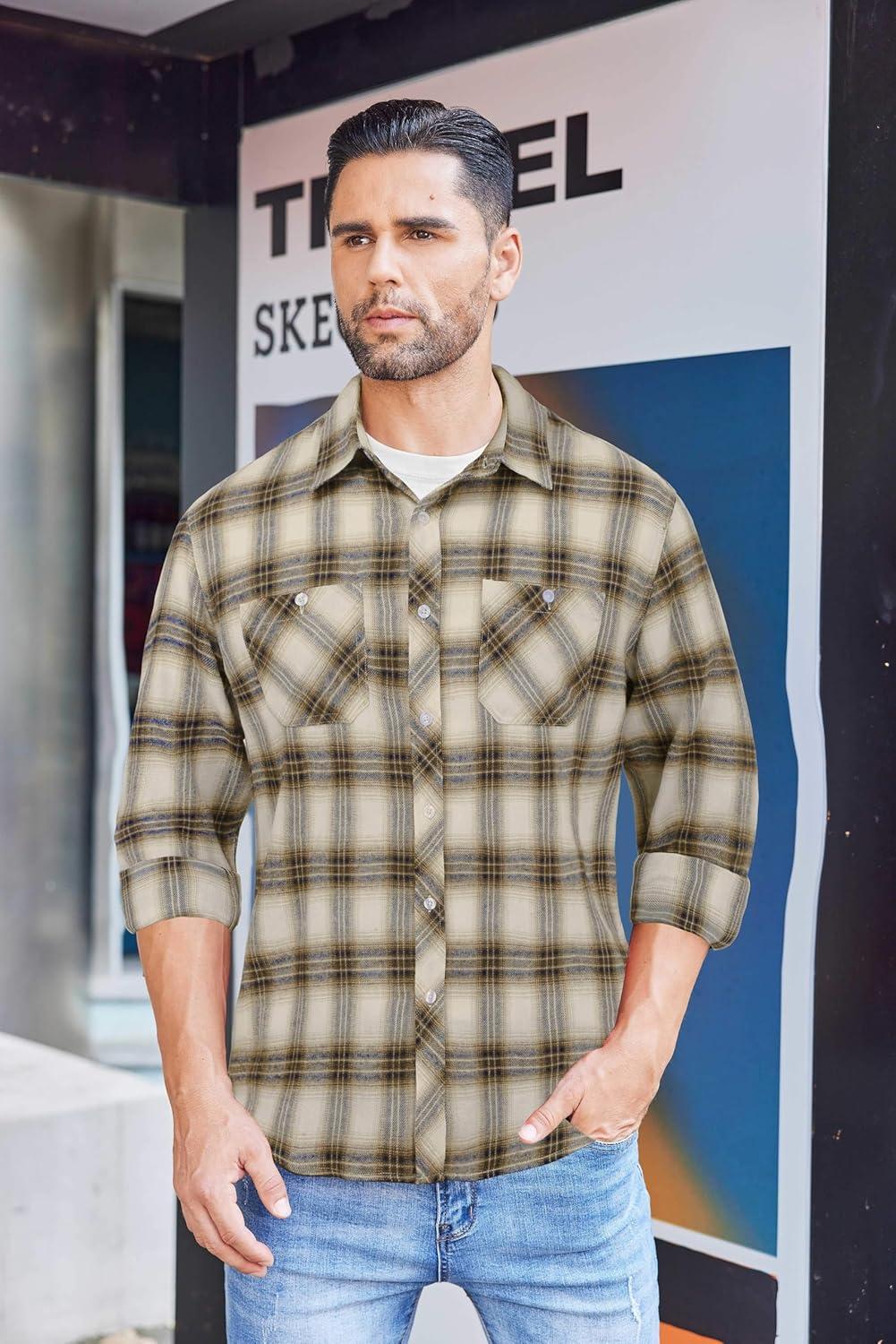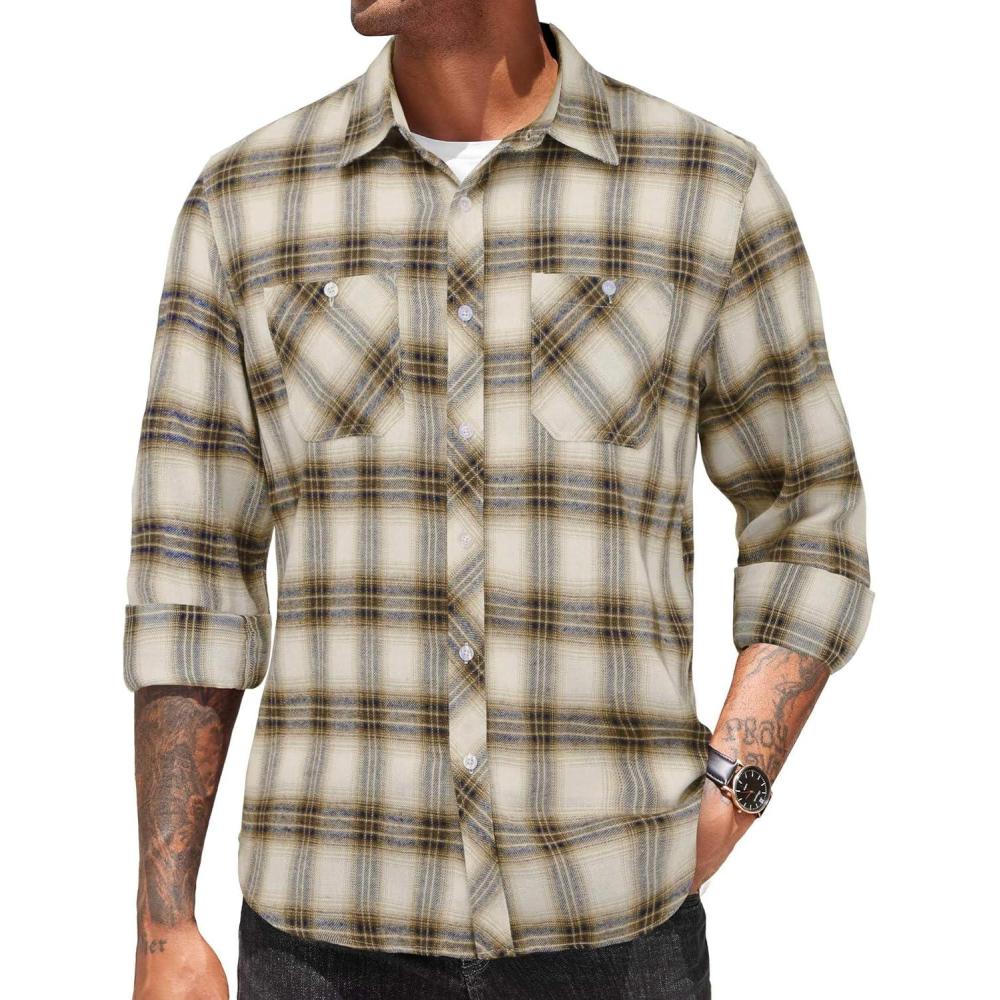 COOFANDY Men's Flannel Plaid Shirts Long Sleeve Casual Button Down Shirt with Pockets(Khaki Black Plaid)