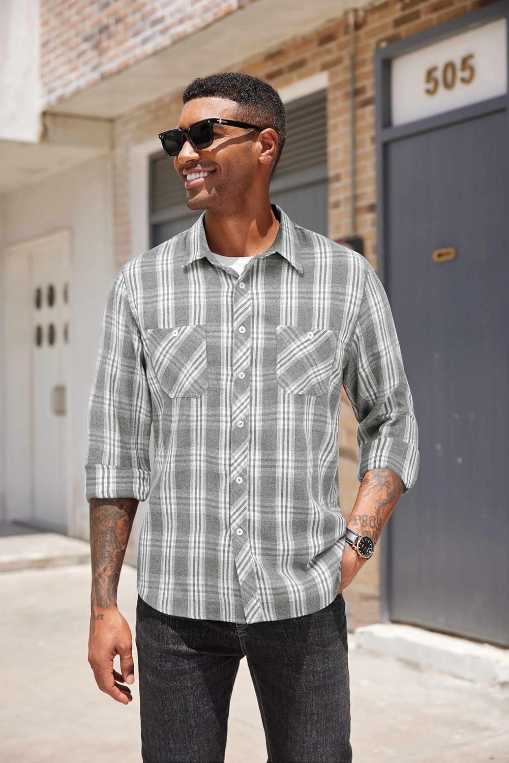 Get up to 70% off on COOFANDY Men’s Flannel Plaid Shirts Long Sleeve Casual Button Down Shirt with Pockets(Light Grey) styles during our end-of-season clearance event.