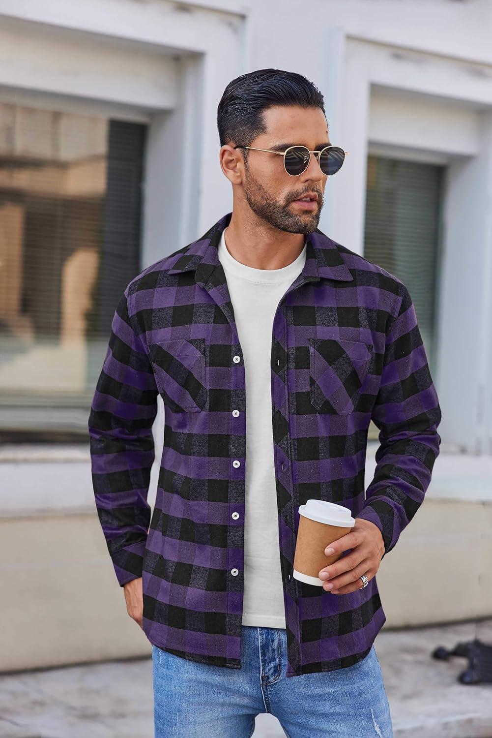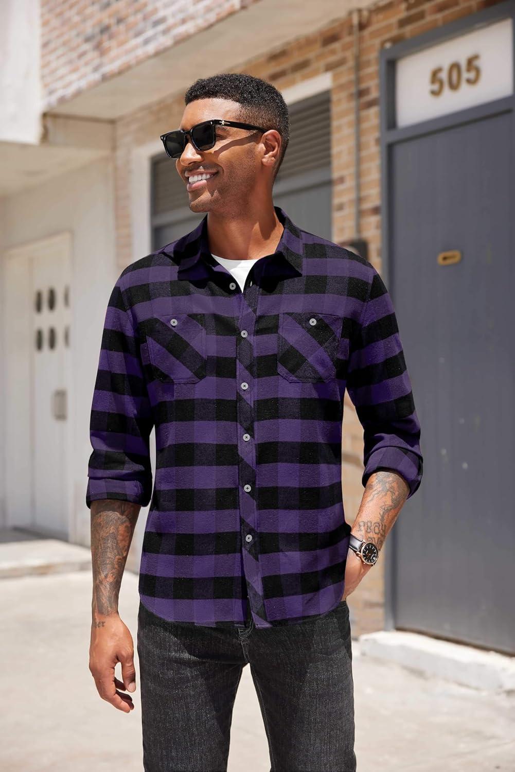 COOFANDY Men's Flannel Plaid Shirts Long Sleeve Casual Button Down Shirt with Pockets(Purple)