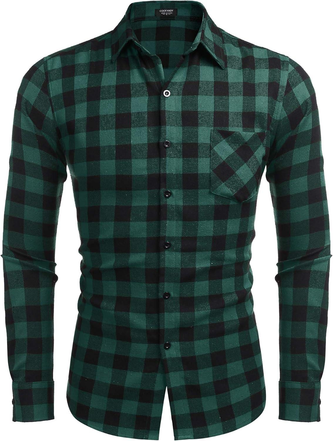 COOFANDY Men's Flannel Plaid Shirts Long Sleeve Casual Cotton Button Down Shirts(2 - Green)