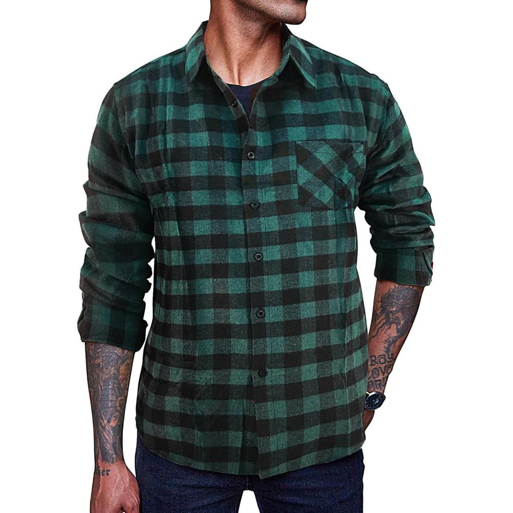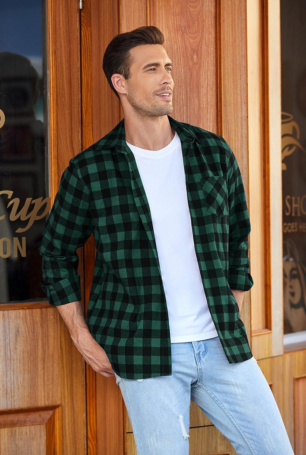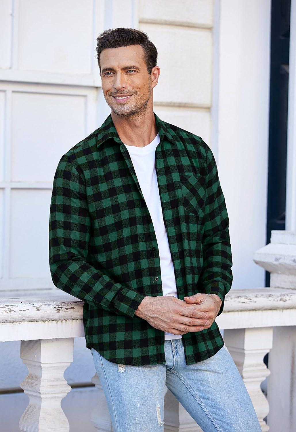 COOFANDY Men’s Flannel Plaid Shirts Long Sleeve Casual Cotton Button Down Shirts(2 – Green)