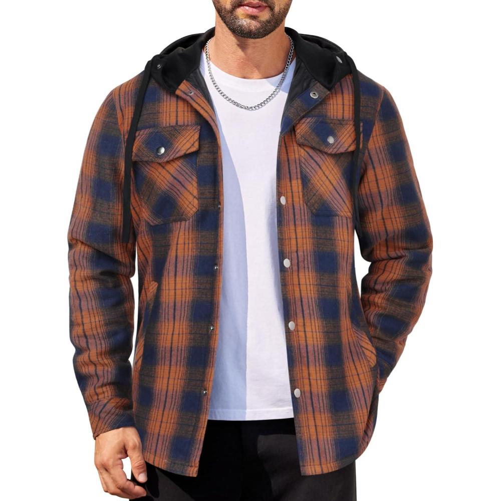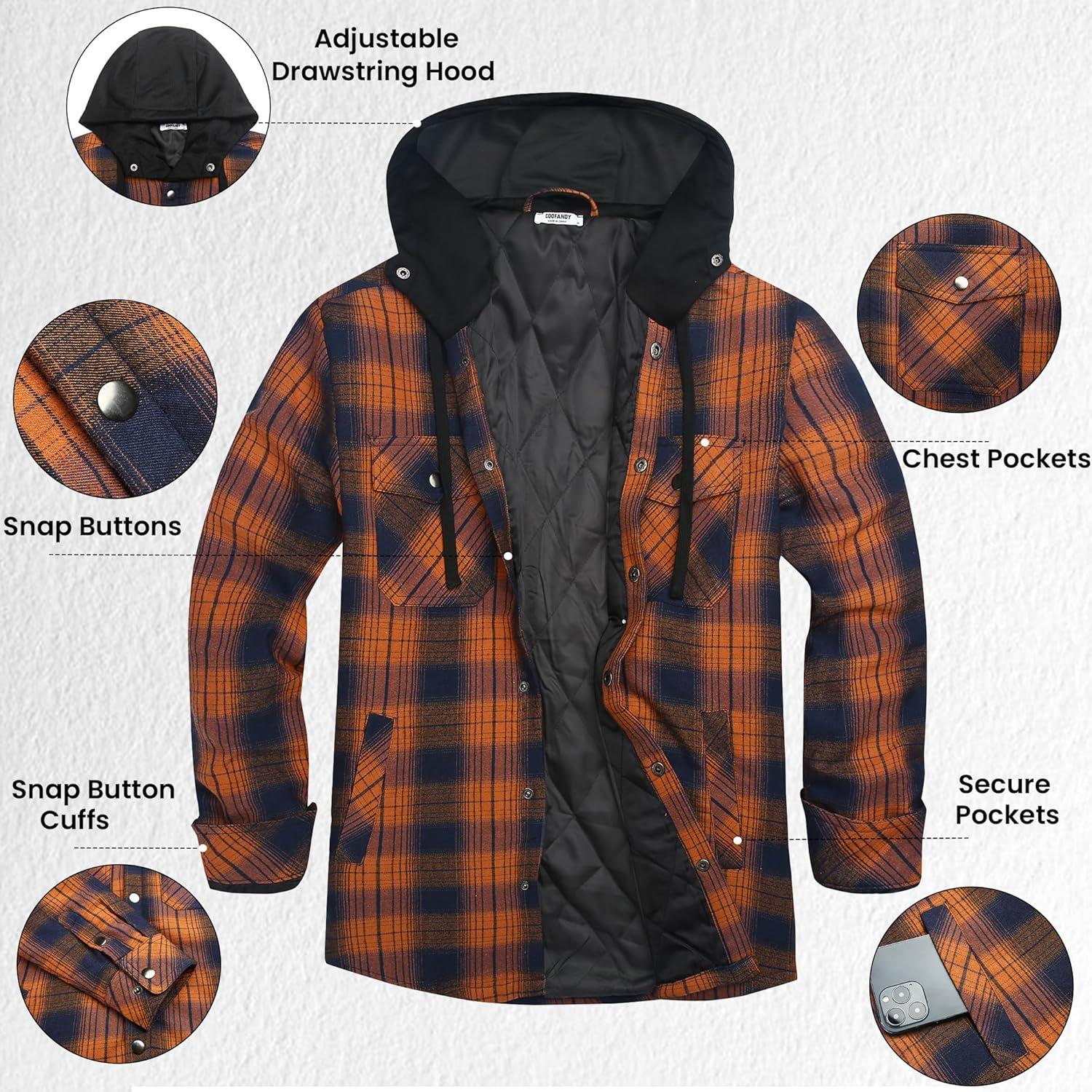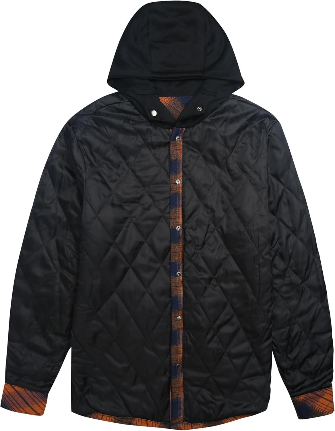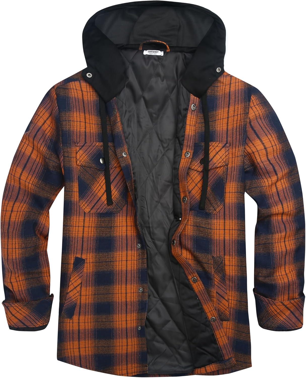 COOFANDY Mens Flannel Shirt Jacket Cotton Quilted Lined Plaid Shirt Long Sleeve Button Down Hoodie Jackets(Navy Brown Plaid)