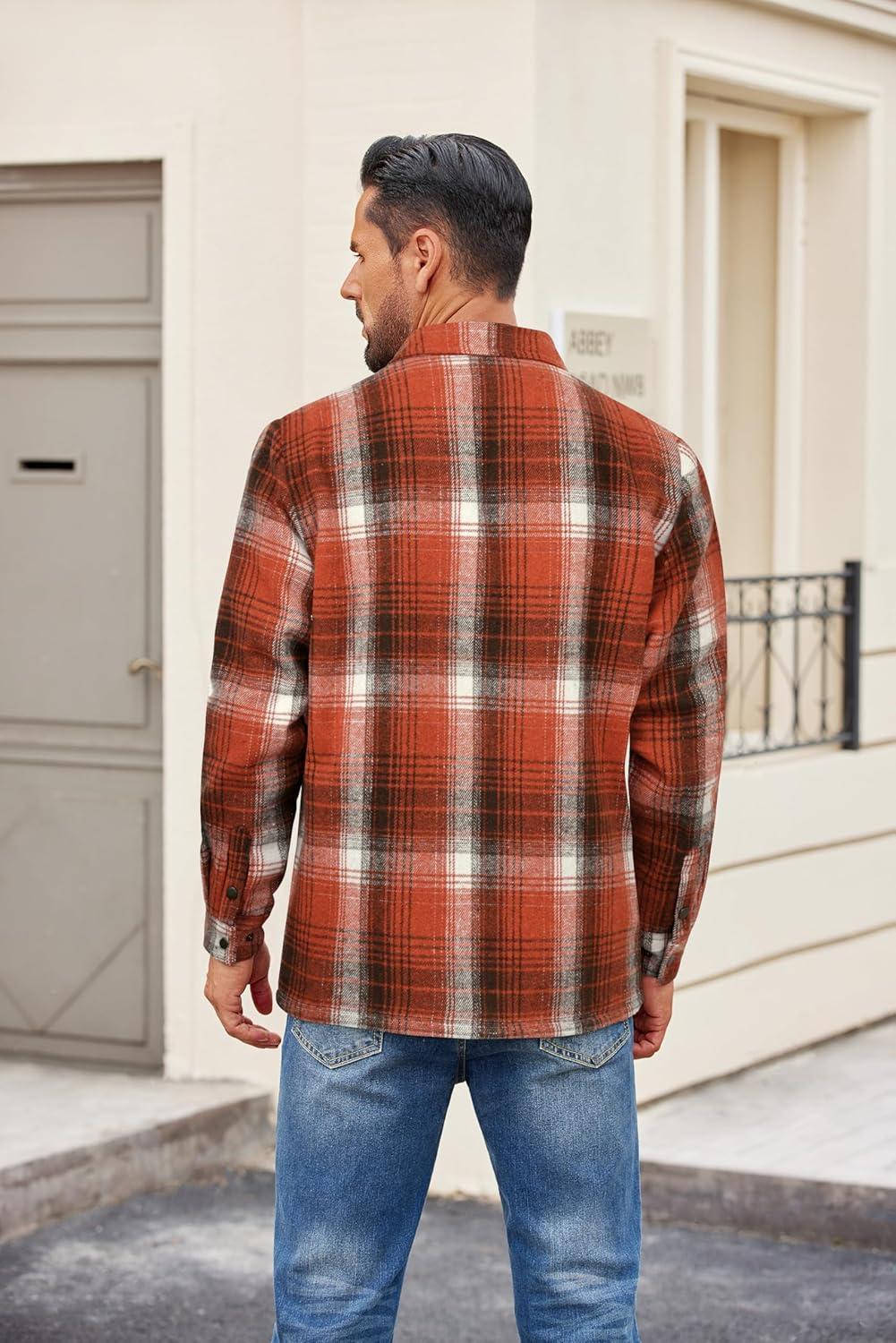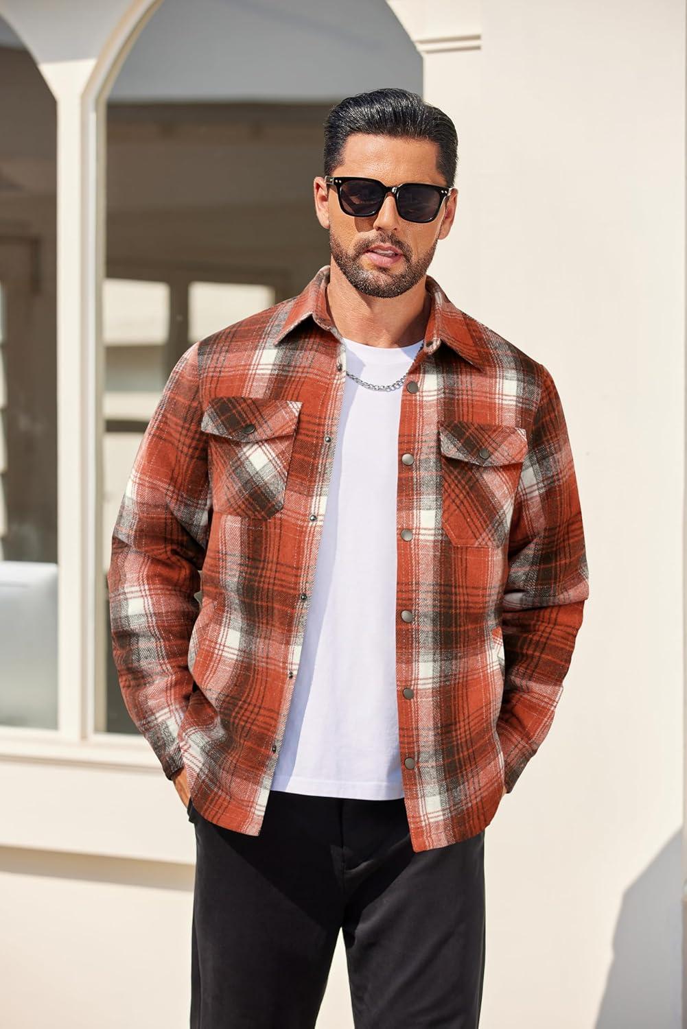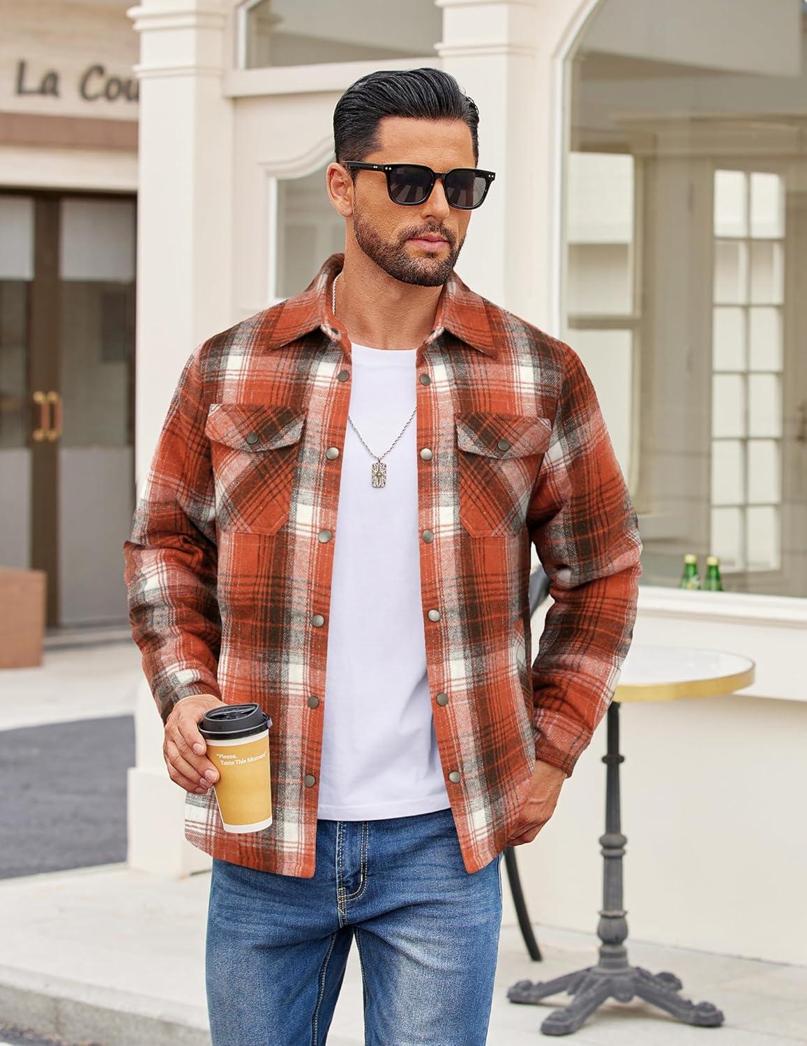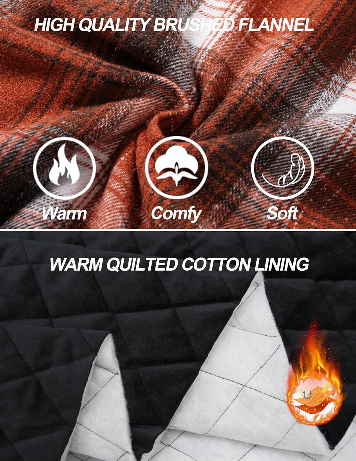 COOFANDY Men’s Flannel Shirt Jackets Quilted Lined Plaid Jacket Long Sleeve Button Down Thick Winter Outwear Shackets(Orange)