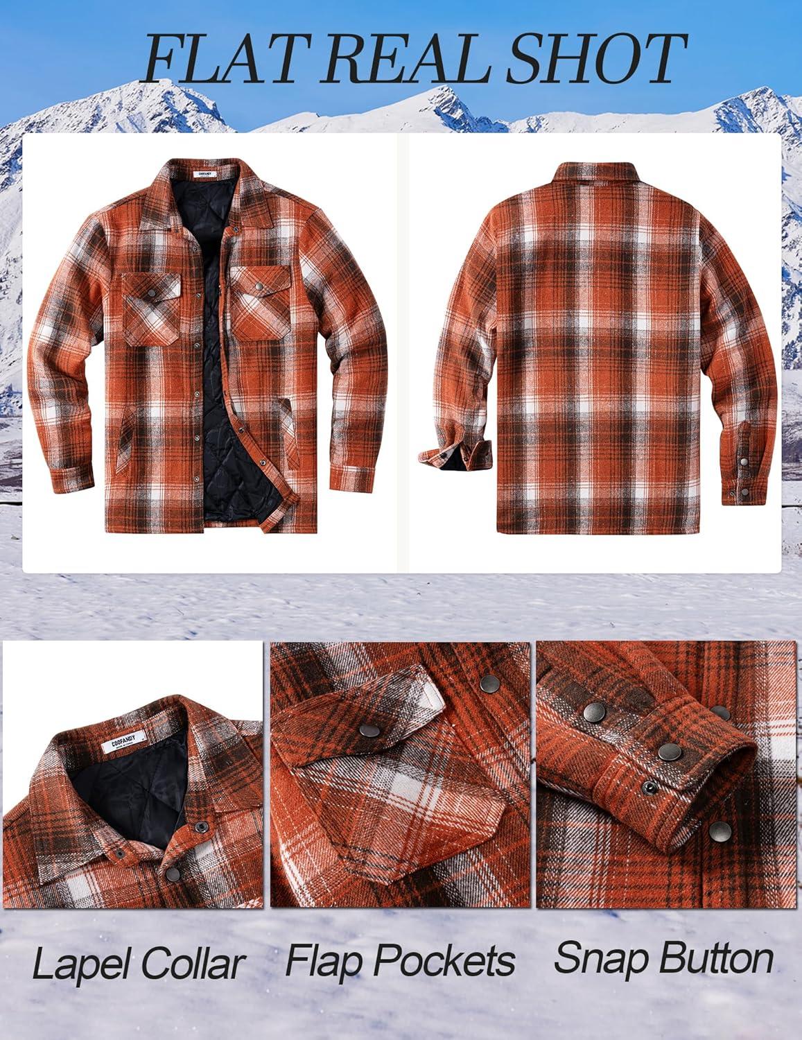 imageCOOFANDY Mens Flannel Shirt Jackets Quilted Lined Plaid Jacket Long Sleeve Button Down Thick Winter Outwear ShacketsOrange